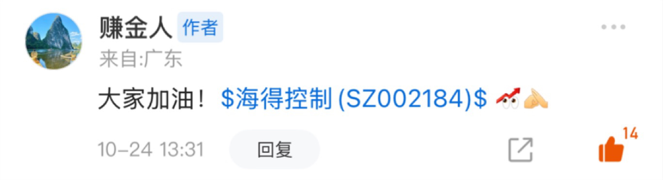 咱们周五介入的$海得控制(SZ002184)$ 虽然今天的幅度不大但比起外面我这可温柔多了呢~关注我久的铁汁都清楚我的胜率有多高