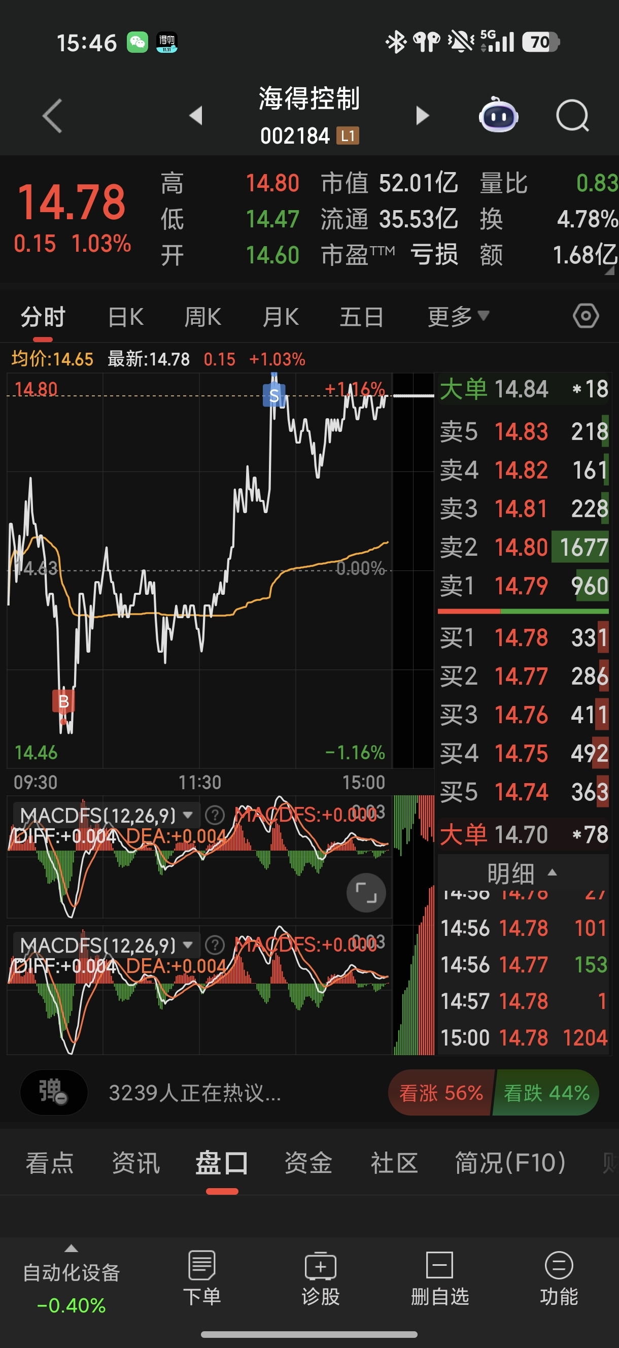 $海得控制(SZ002184)$ 再回6个点就解套了