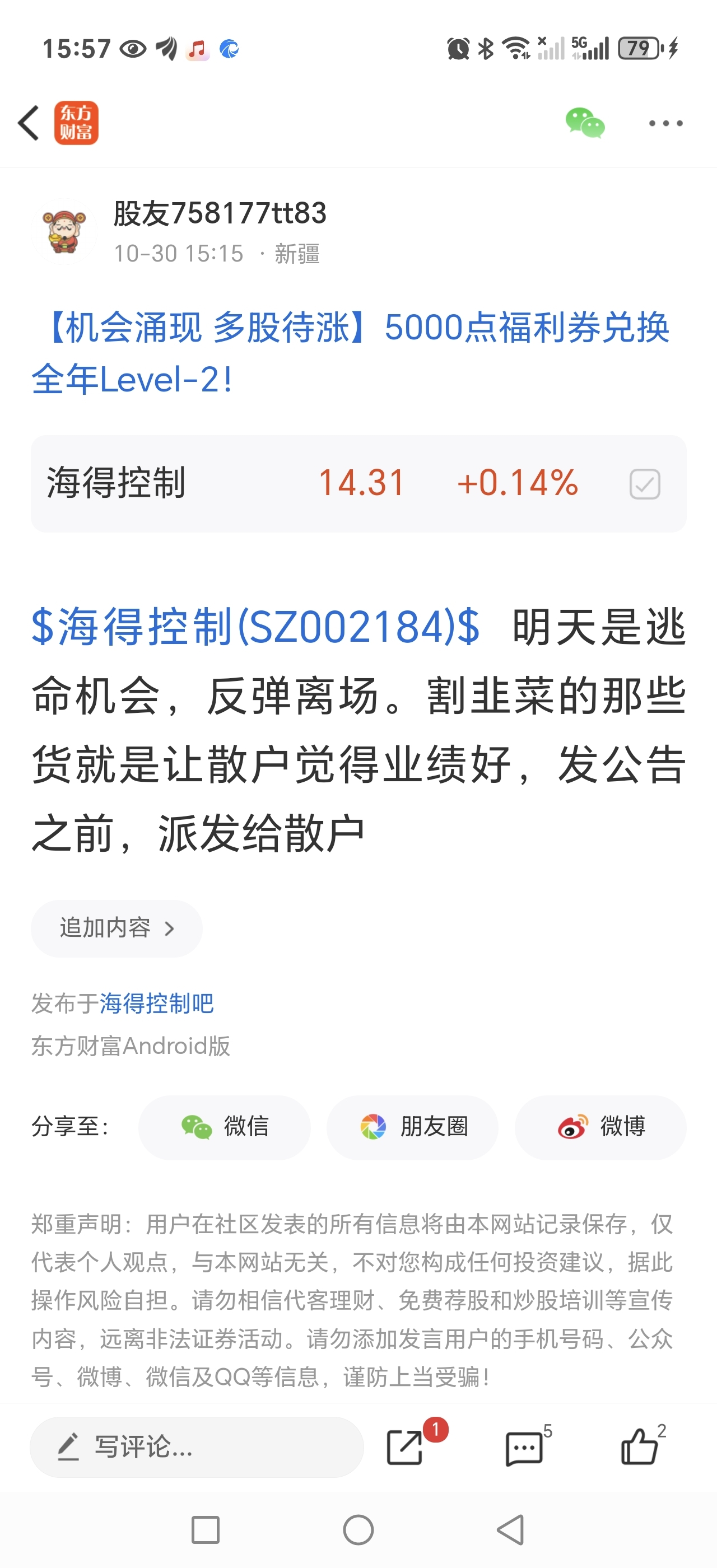温馨提示: 1.根据《证券法》规定,禁止编造、传播虚假信息或者误导性信息,扰乱证券市场;2.用户在本社区发表的所有资料、言论等仅代表个人观点,与本网站立场无关,不对您构成任何投资建议。用户应基于自己的独立判断,自行决定证券投资并承担相应风险。《东方财富社区管理规定》