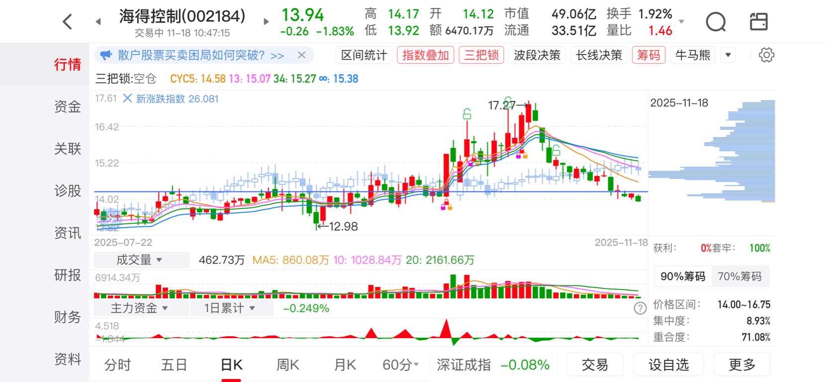 $海得控制(SZ002184)$ 百分百套牢盘,这个游戏到底怎么了~