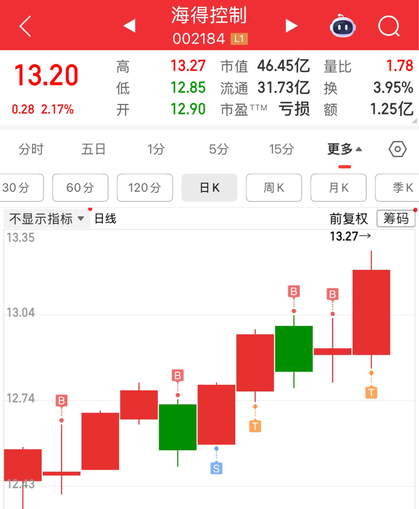 $海得控制(SZ002184)$ 明天上不了年线走人了。