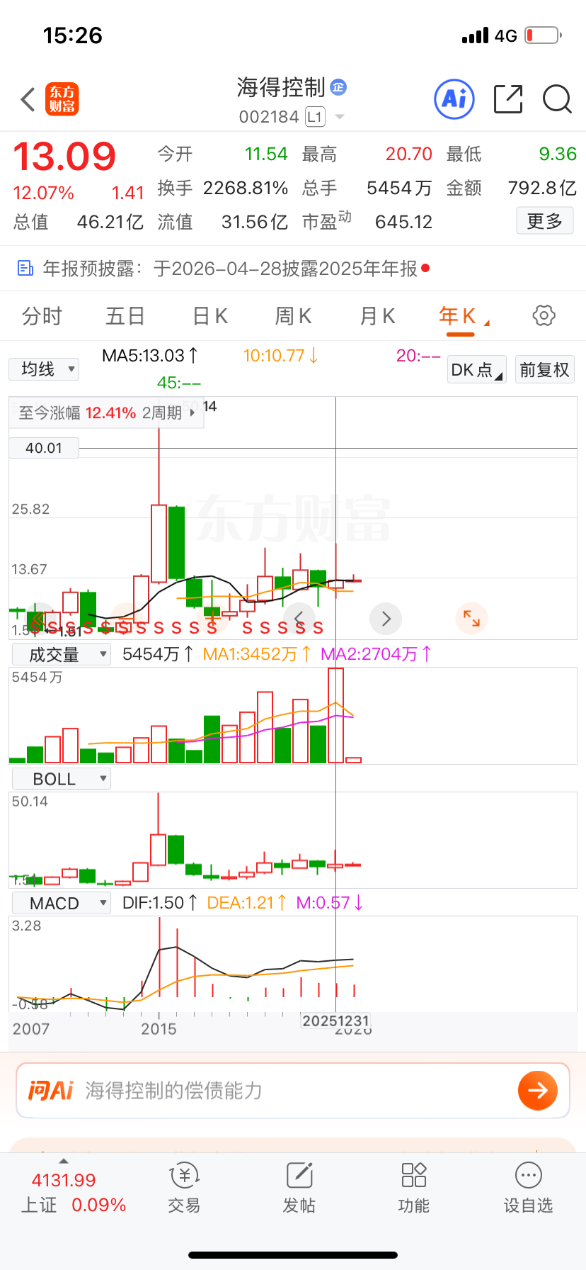 $海得控制(SZ002184)$ 大盘2025年涨幅18个点,海得涨幅12个点