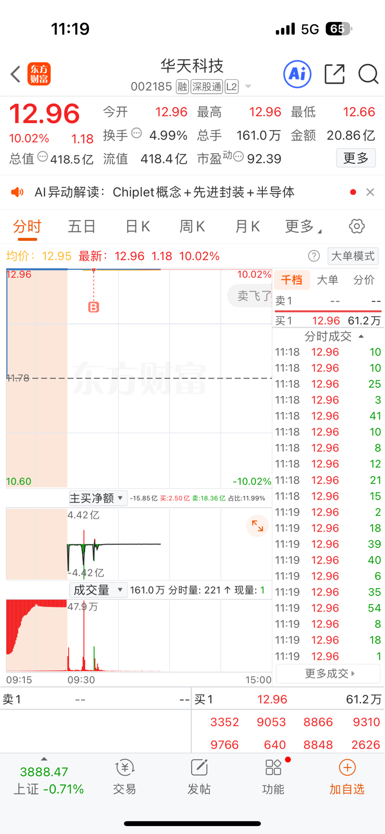 $华天科技(SZ002185)$ 第一次炸没看到然后挂单了没想到有惊喜虽然只买了两千多股