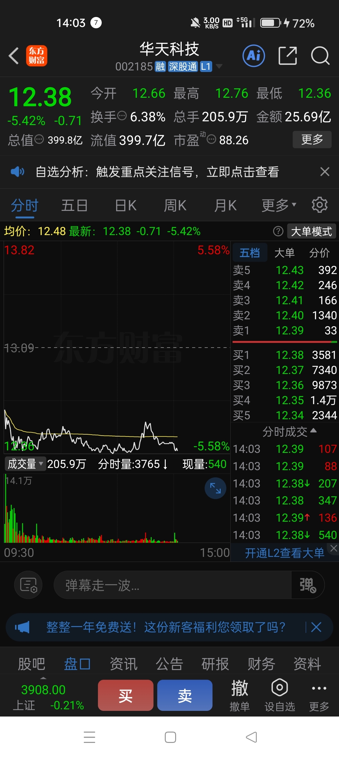 $华天科技(SZ002185)$ 主力套现离场,收购华弈还差10亿