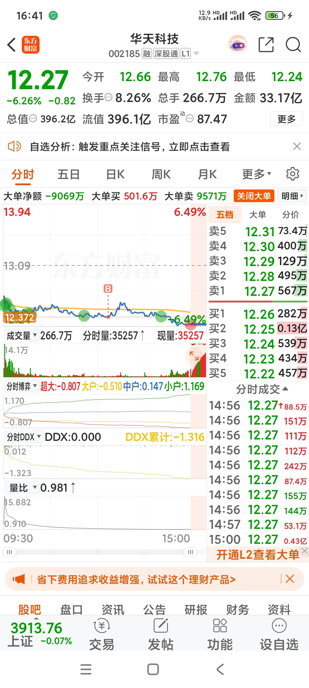 $华天科技(SZ002185)$ 买早了!明天低于12.22就割了它!突破12.56就拿着