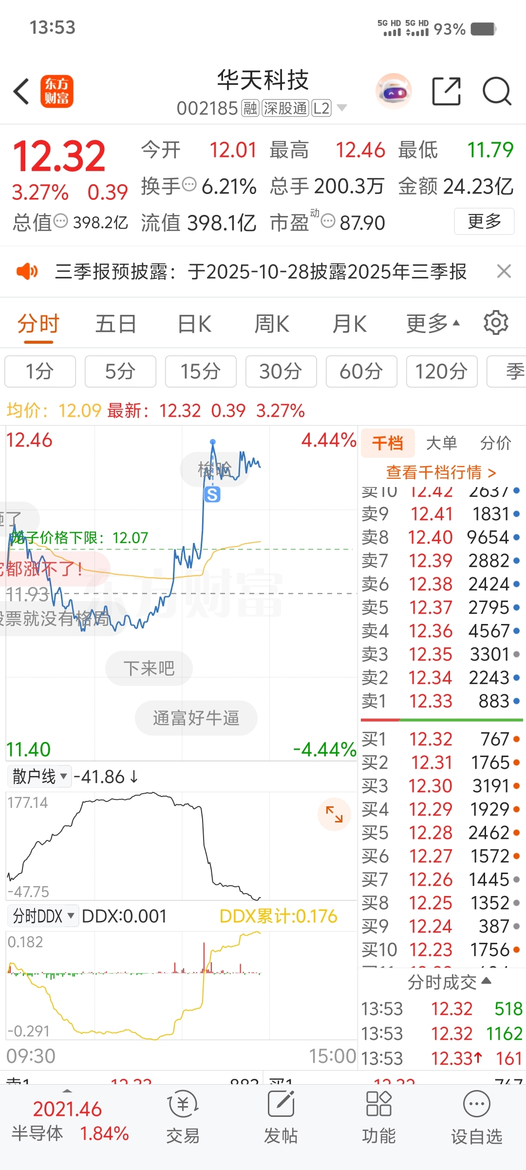 $华天科技(SZ002185)$ 感谢主力拉升,先落袋为安了!