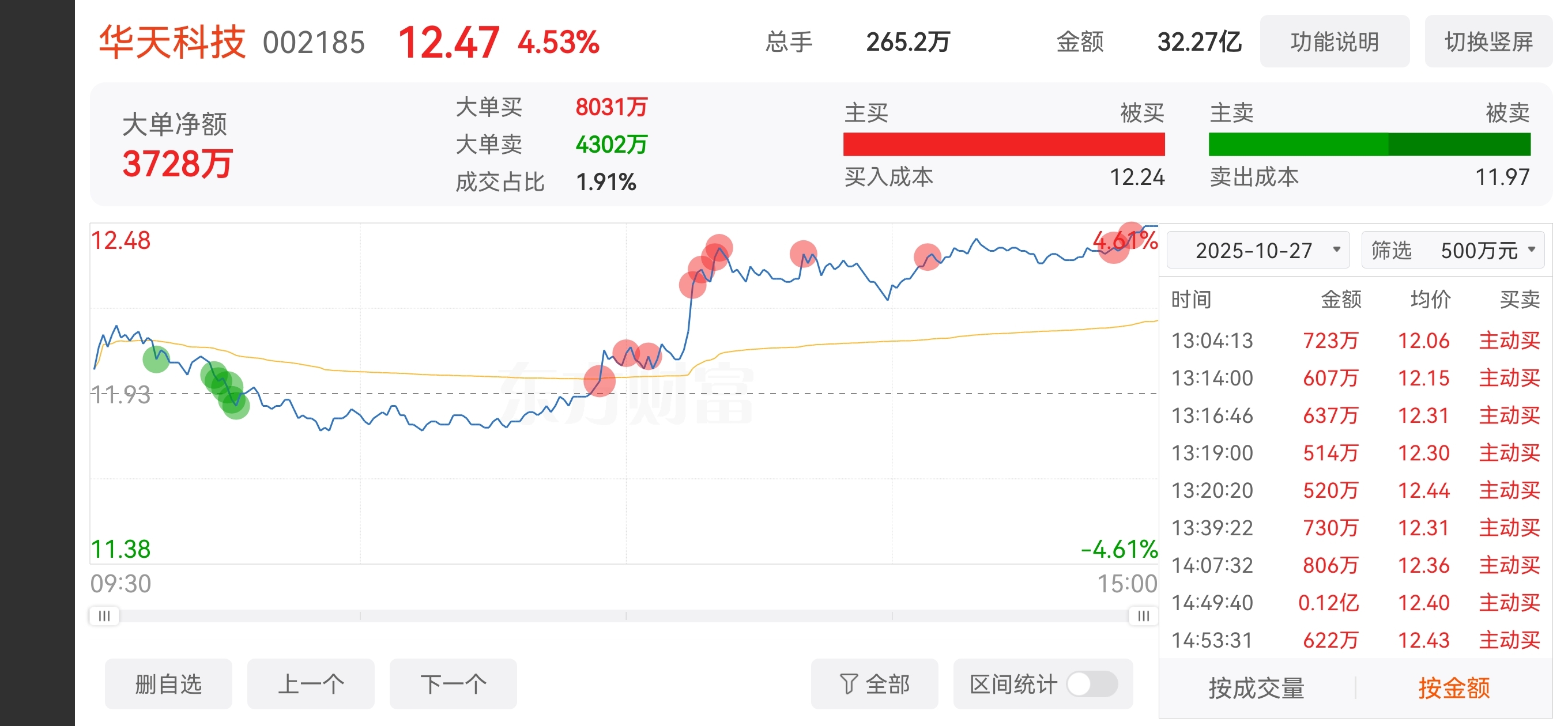 $华天科技(SZ002185)$ 这是要大涨的节奏吗,大单资金全是买入
