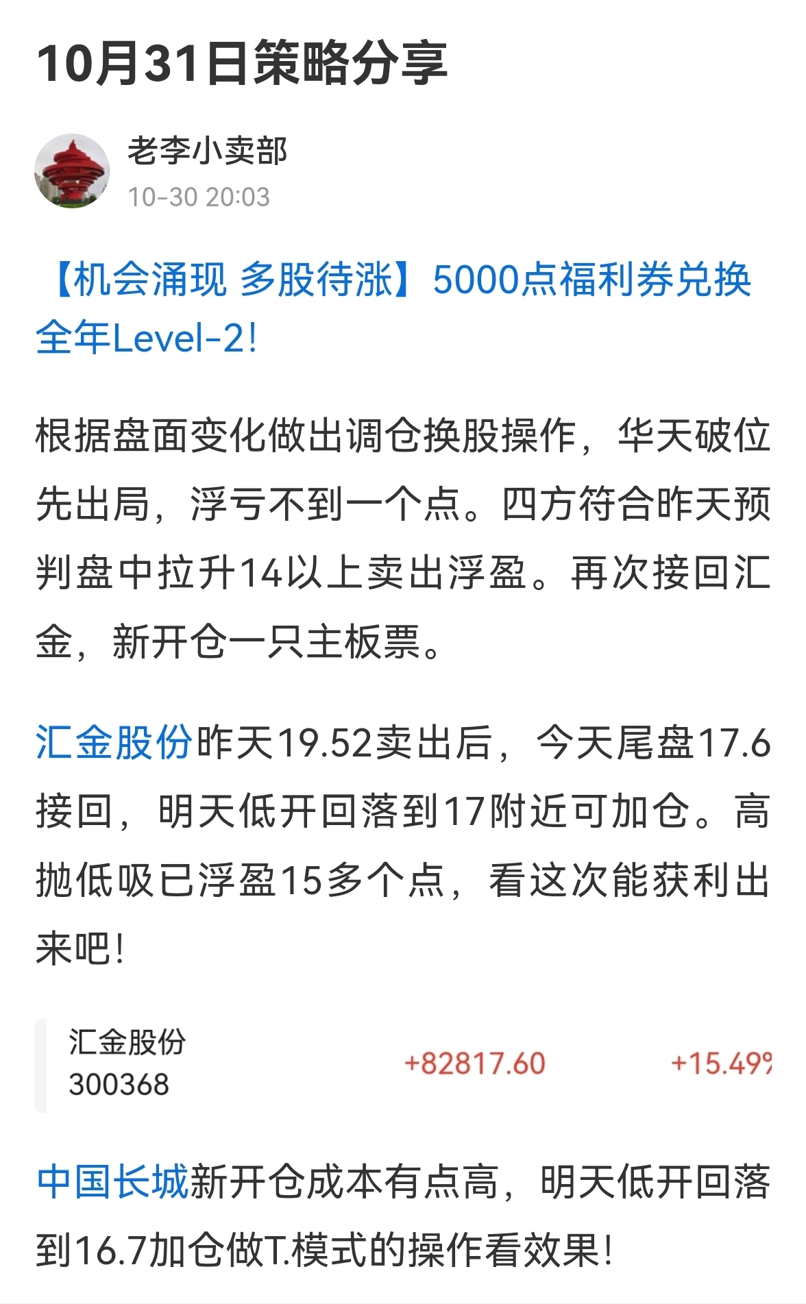 郑重声明:用户在财富号/股吧/博客等社区发表的所有信息(包括但不限于文字、视频、音频、数据及图表)仅代表个人观点,与本网站立场无关,不对您构成任何投资建议,据此操作风险自担。请勿相信代客理财、免费荐股和炒股培训等宣传内容,远离非法证券活动。请勿添加发言用户的手机号码、公众号、微博、微信及QQ等信息,谨防上当受骗!