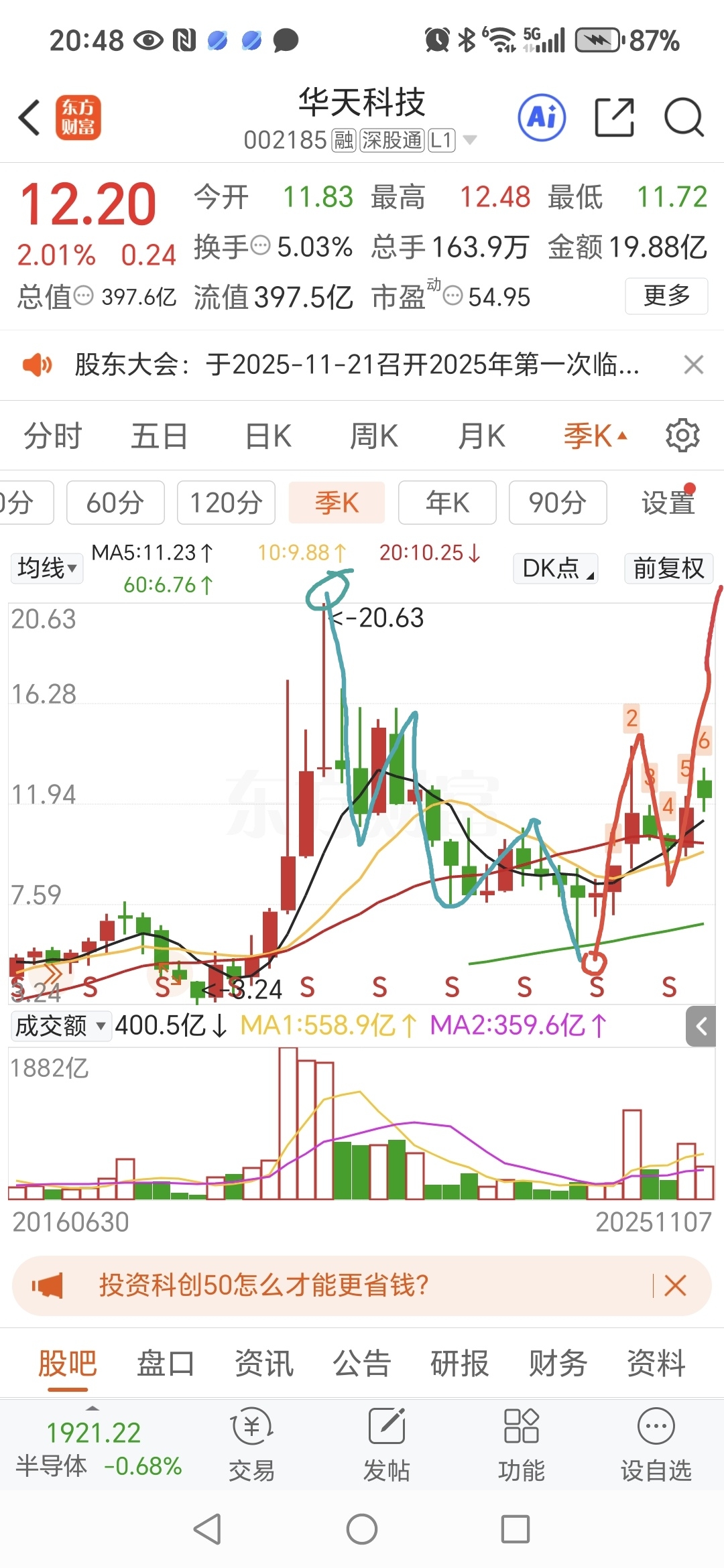 华天季度K线图显示,5浪下跌已结束,上涨5浪刚开始。上涨五浪正进入第三浪(第三浪