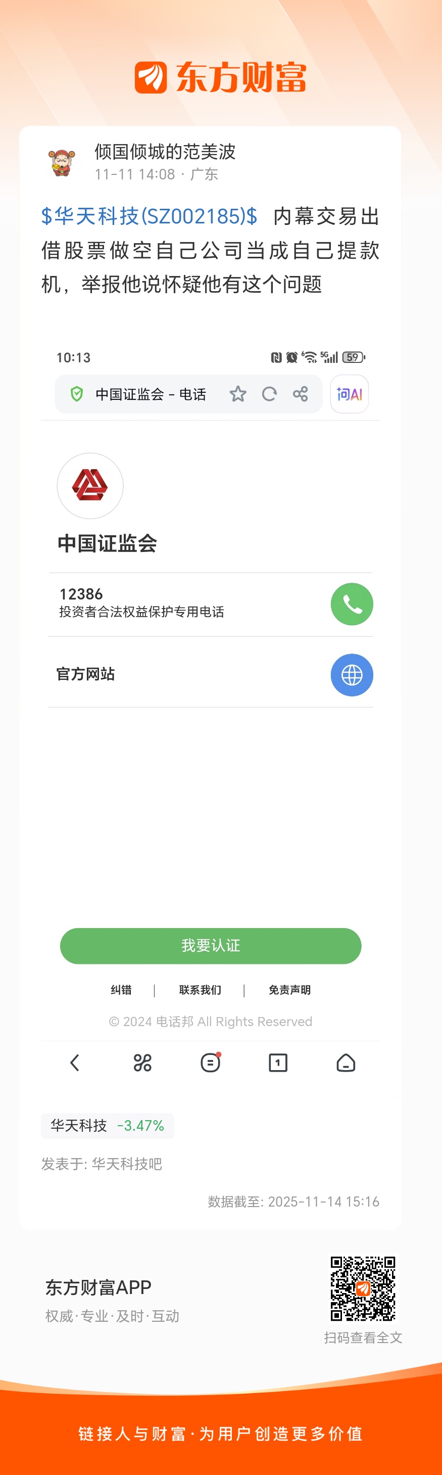 $华天科技(SZ002185)$  内幕交易出借股票做空自己公司当成自己提款机,举报他说怀疑他有这个问题