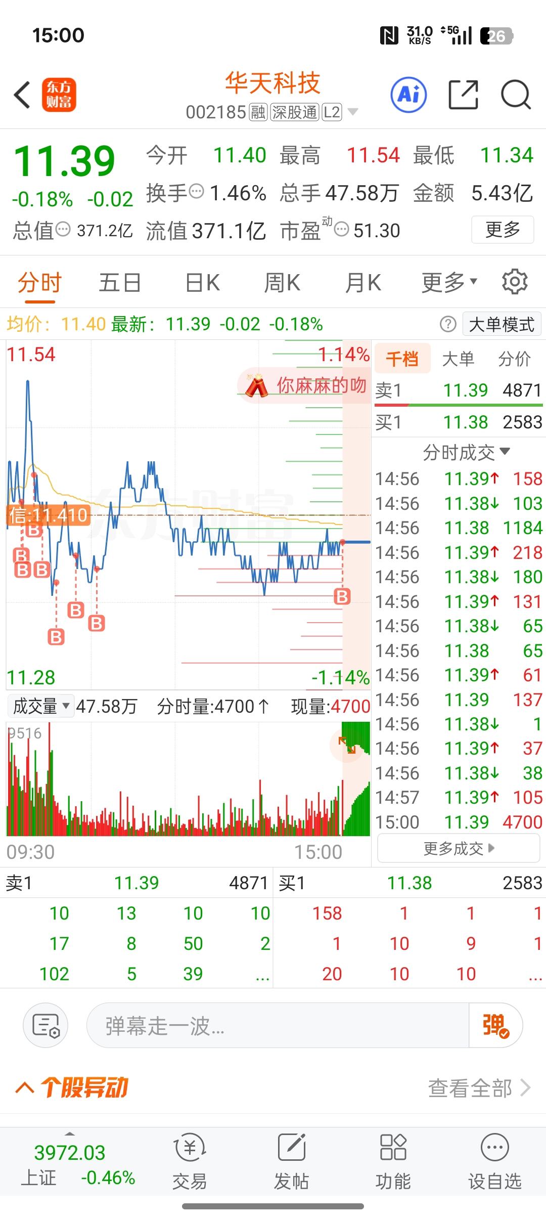 $华天科技(SZ002185)$ 今天买了100w,买了8个B