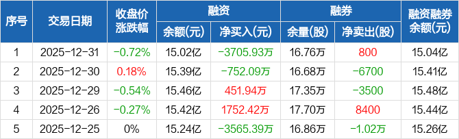 华天科技:融资净偿还3705.93万元,融资余额15.02亿元(12-31)