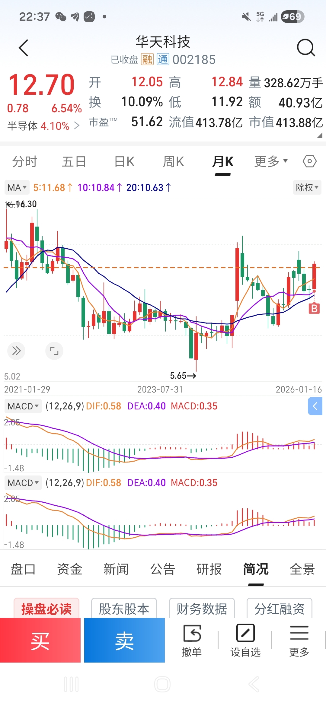 $华天科技(SZ002185)$ 看月线图,还有40%的上涨空间