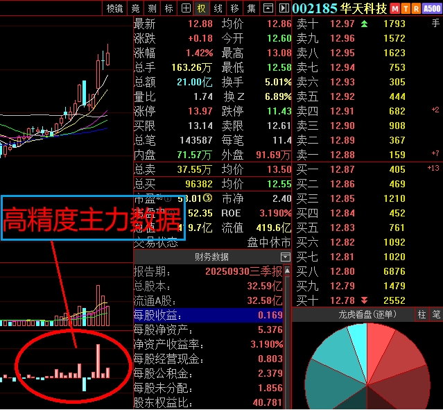 华天科技高精度主力数据图。最近许继电气大单连续大量净买入7个交易日后,昨天诞生涨停板。华天科技最近大单连续净买入已有12个交易日,短线会不会诞生涨停板?竞猜!
