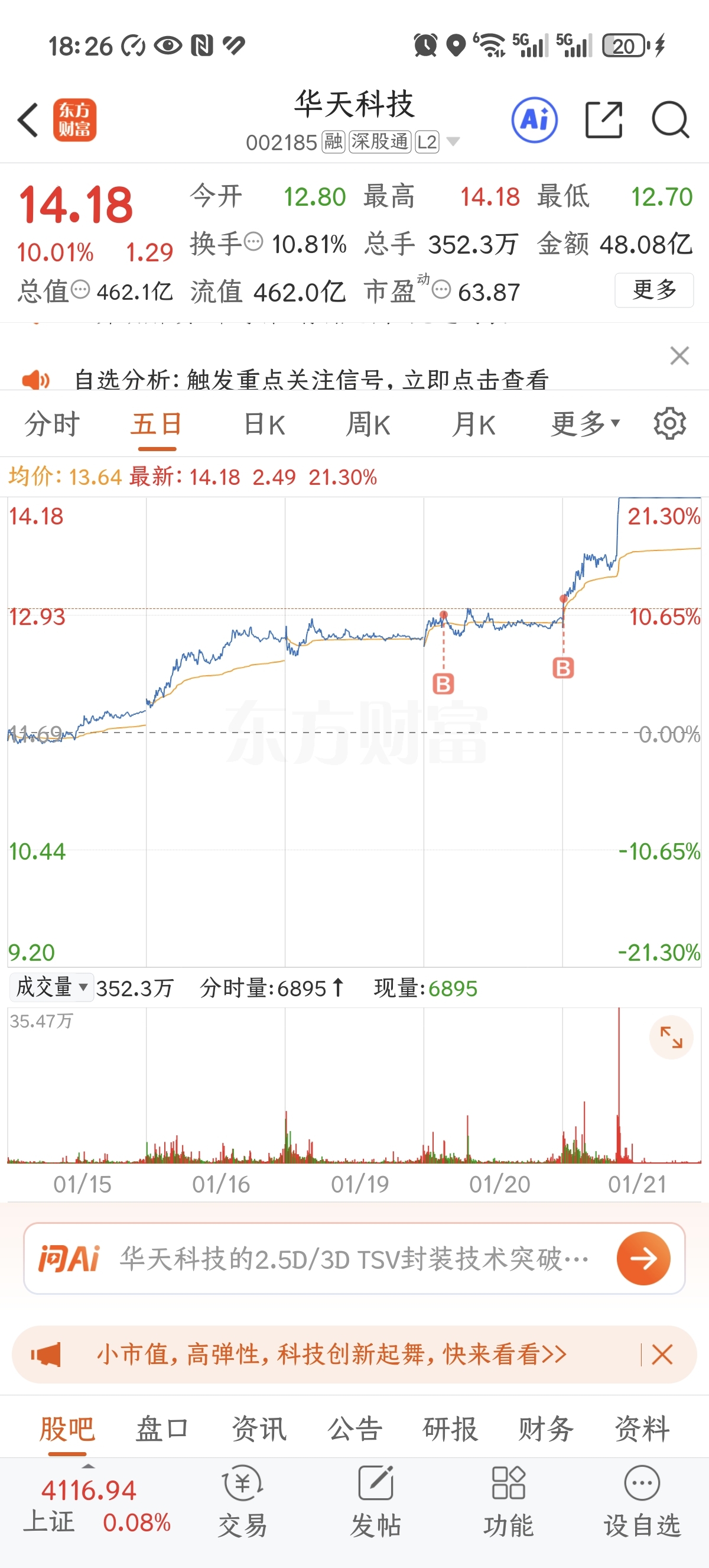 $华天科技(SZ002185)$ 还挺好等我加完仓再涨。