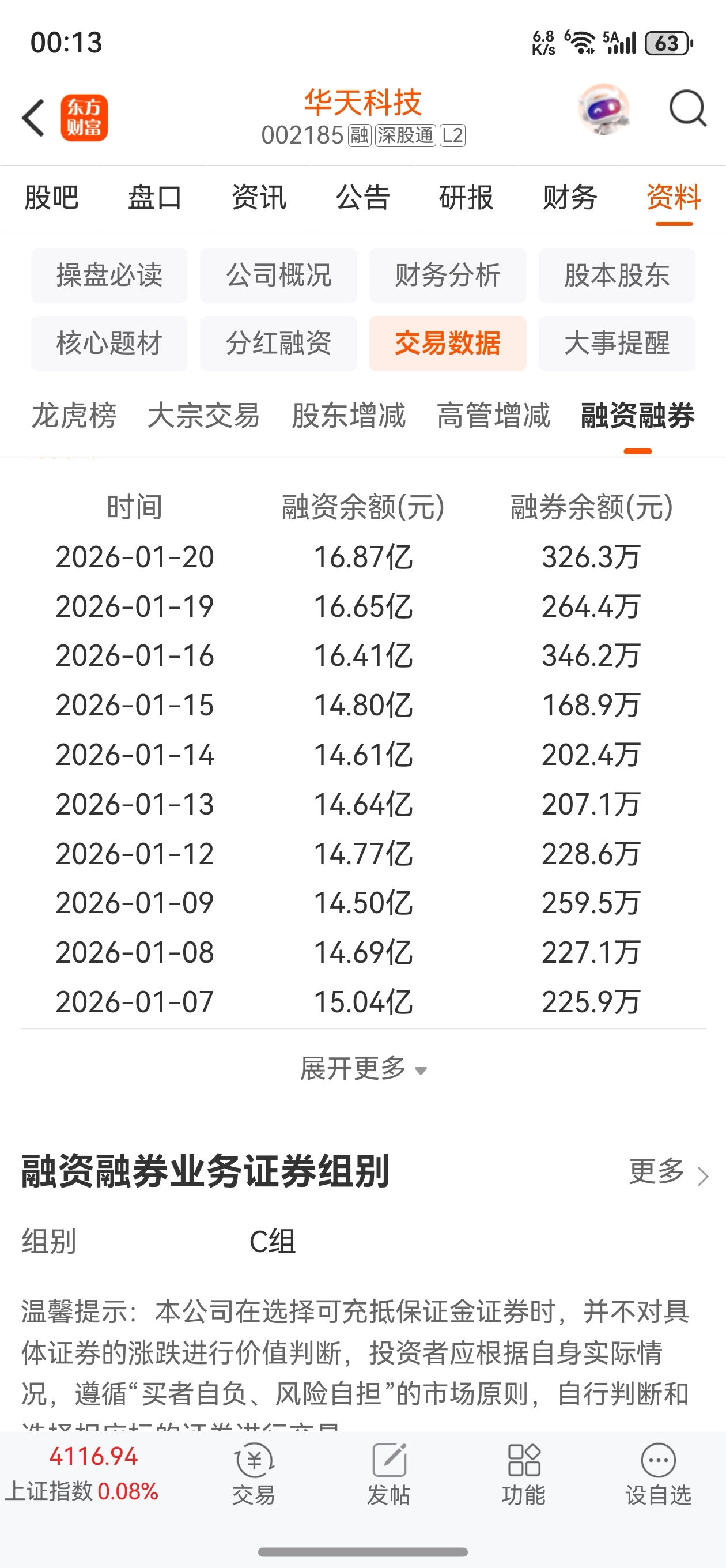 从今天的融资,融券余额来看。融资净买入1.4千万大部分人还是看好的,相比昨天今天融券做空增加800万,而融资做多的资金增加2200万,今天抖音上刚学的,不知道有没有用,明天再观察一下融资融券的变化,结合时时走势看看到底有没有用