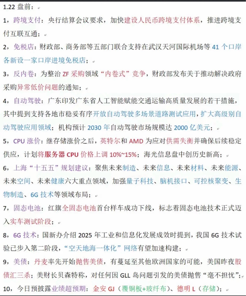 1.22周四重要财经信息汇总!1.跨境支付2.免税店3.CPU涨价4.自动驾驶5
