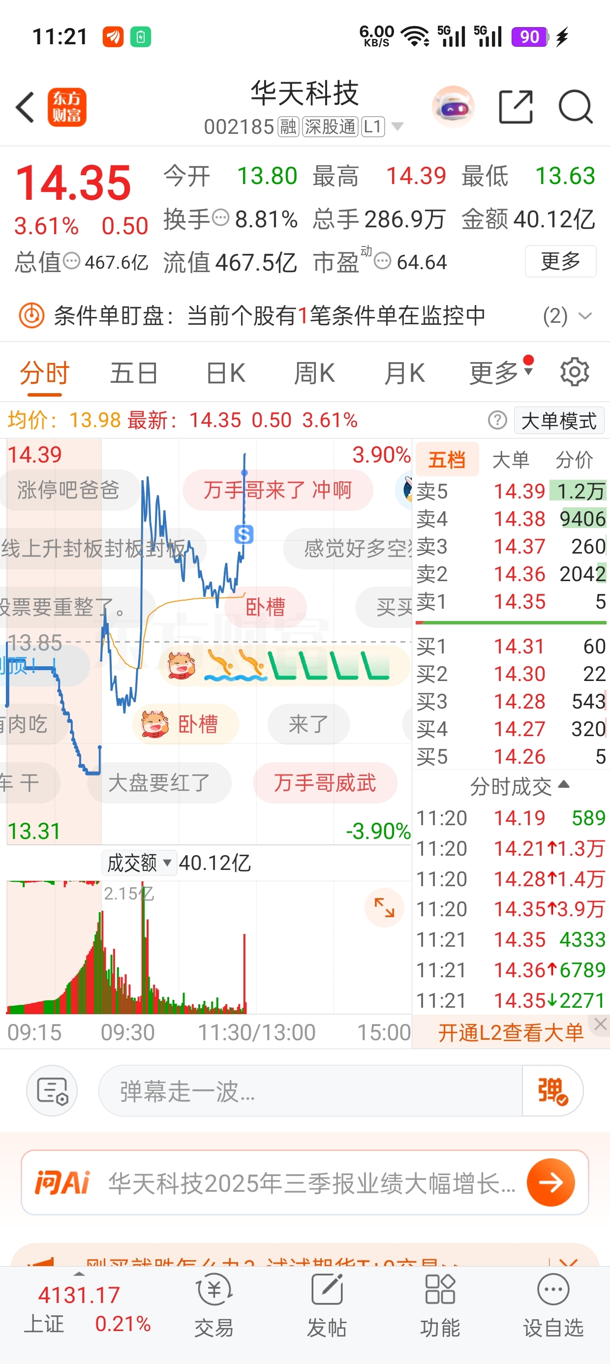 $华天科技(SZ002185)$ 完犊子,没来得及撤单