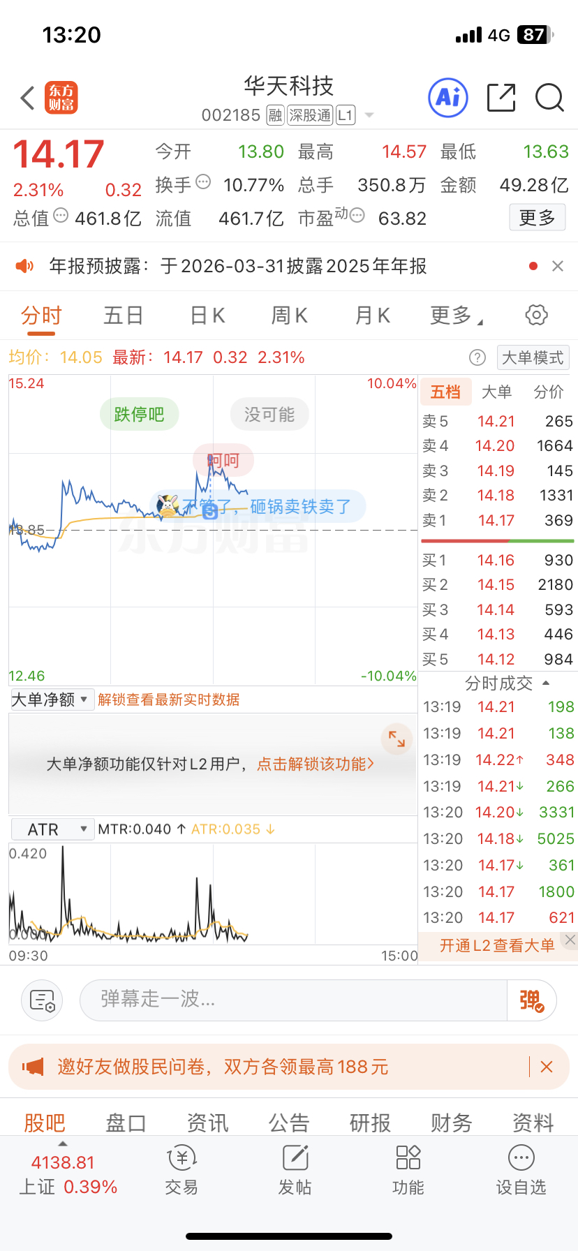 温馨提示: 1.根据《证券法》规定,禁止编造、传播虚假信息或者误导性信息,扰乱证券市场;2.用户在本社区发表的所有资料、言论等仅代表个人观点,与本网站立场无关,不对您构成任何投资建议。用户应基于自己的独立判断,自行决定证券投资并承担相应风险。《东方财富社区管理规定》