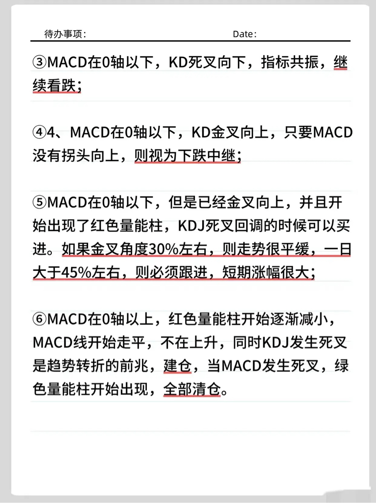 - MACD低位金叉+红柱出现:KDJ回调时可分批建仓,金叉角度>45往往爆发力更强。