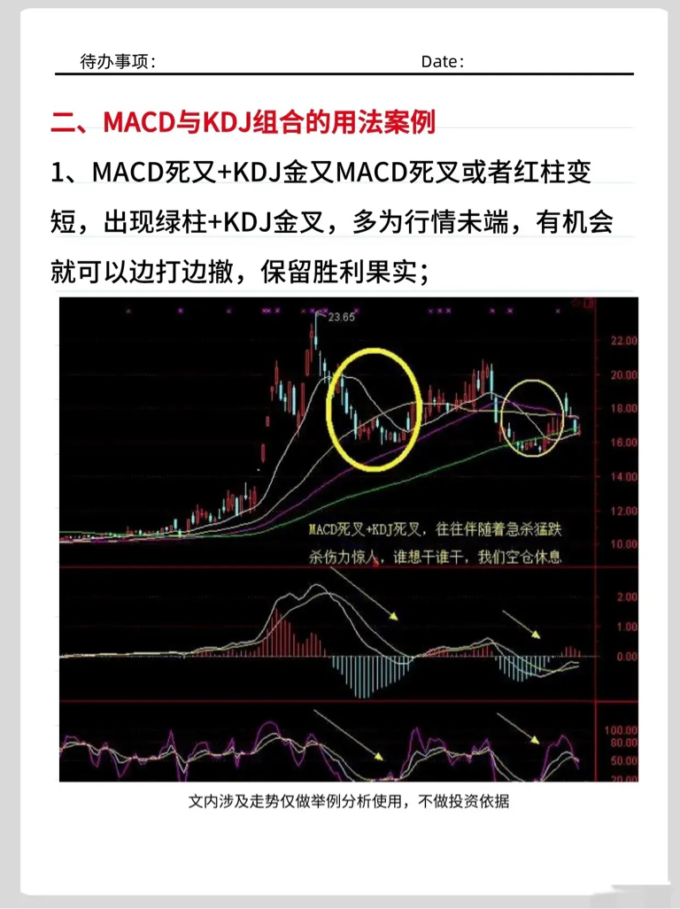 - MACD红柱缩小+KDJ死叉:是趋势转折的前兆,需逐步减仓。