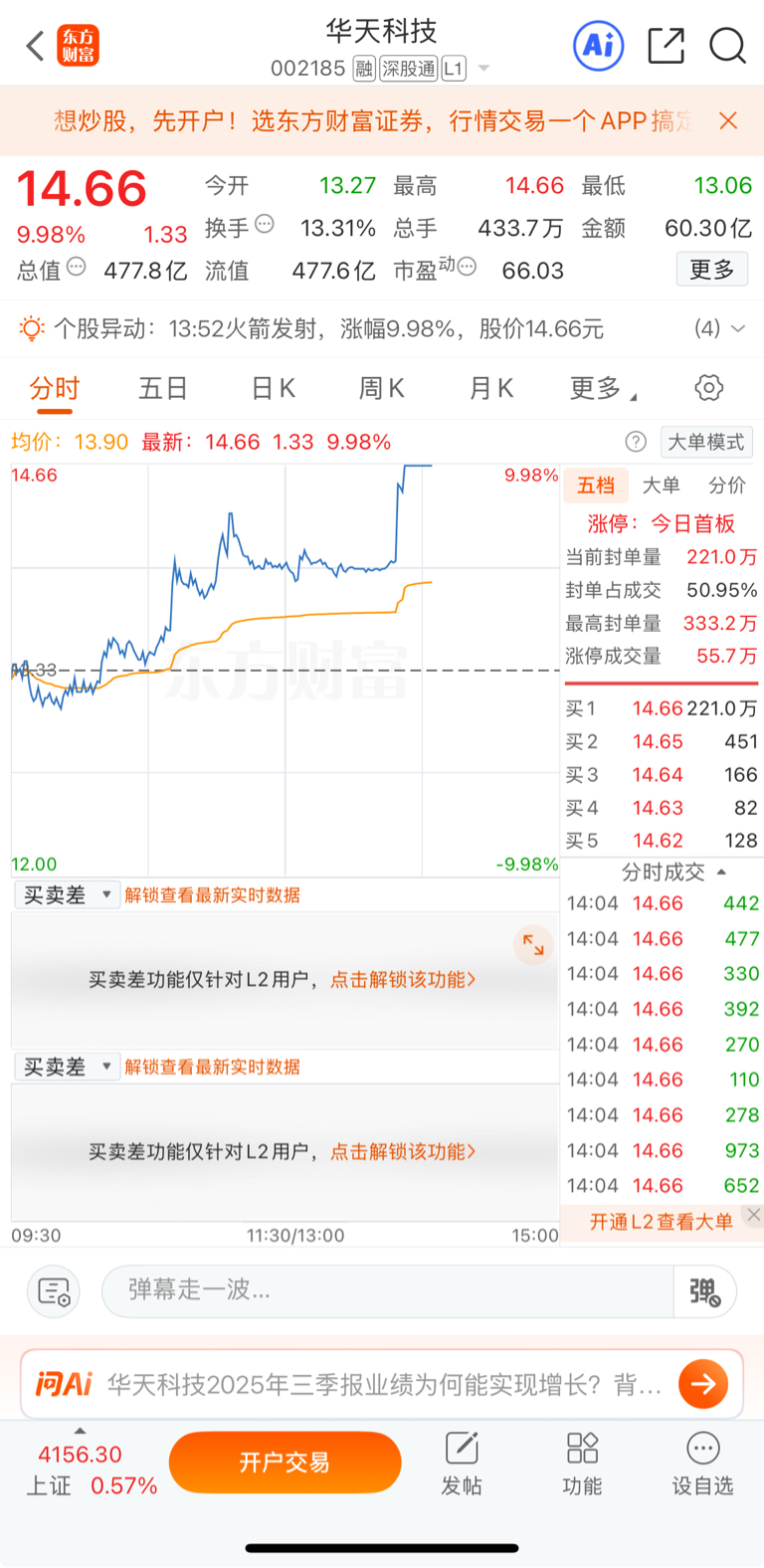 兄弟们开心我也开心,今天上车的:华天科技收获涨停,今晚大家不要忘记加了