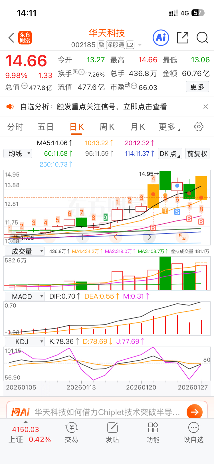 $华天科技(SZ002185)$ 做股票要有信仰,连续干五天,总算把你干好了