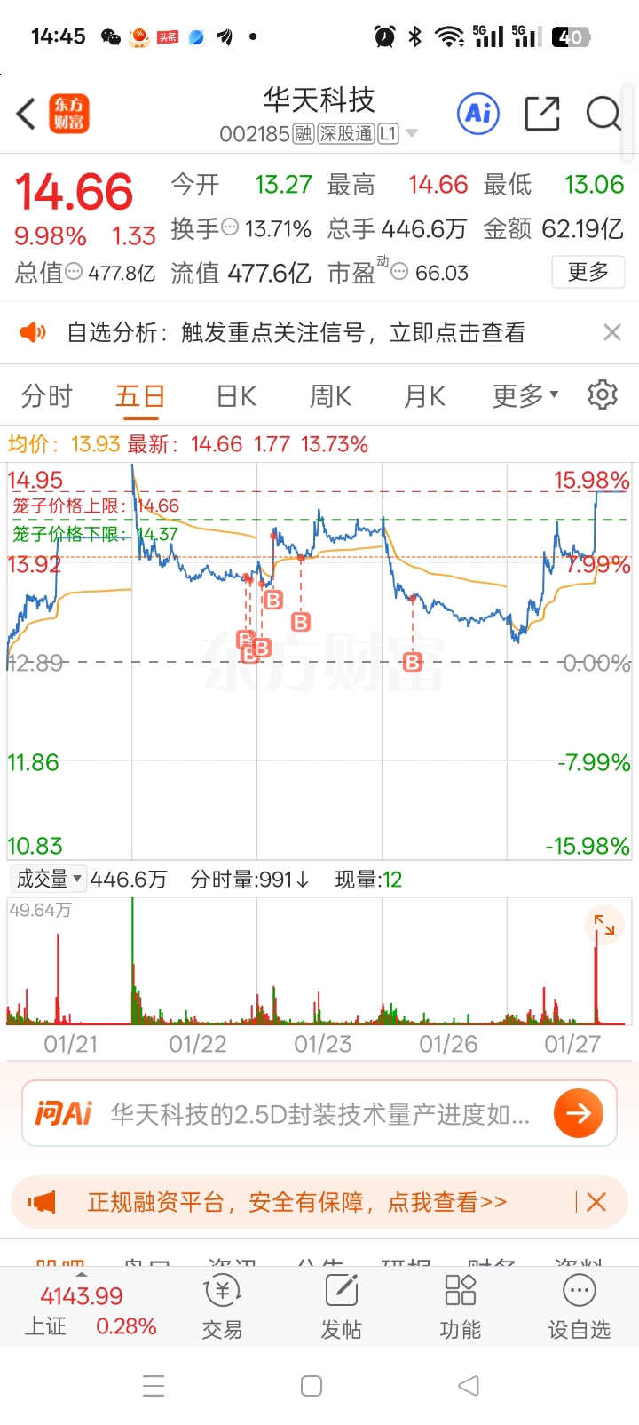 $华天科技(SZ002185)$ #实盘记录# 早上差点被洗出去了,还是要有定力