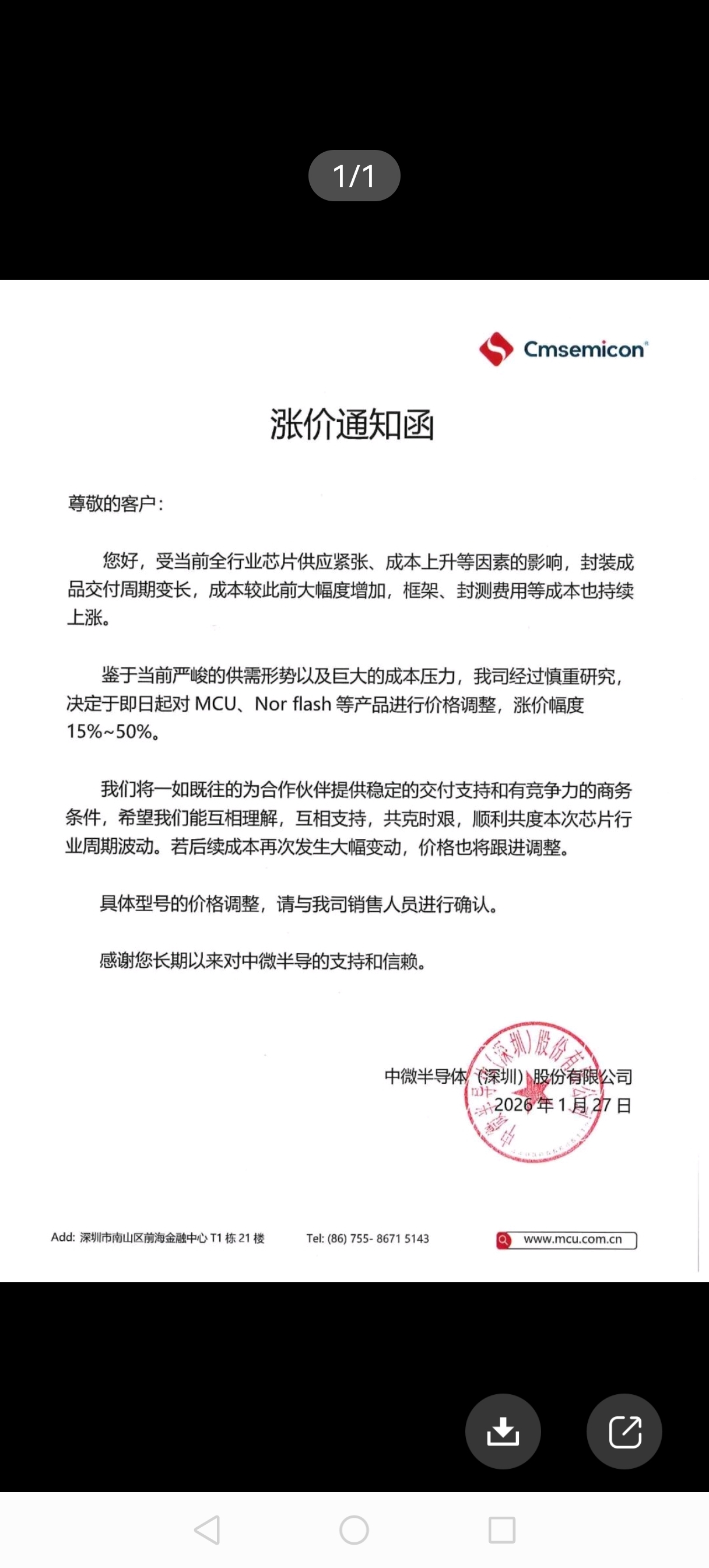 半导体已经陆续发出涨价通知了