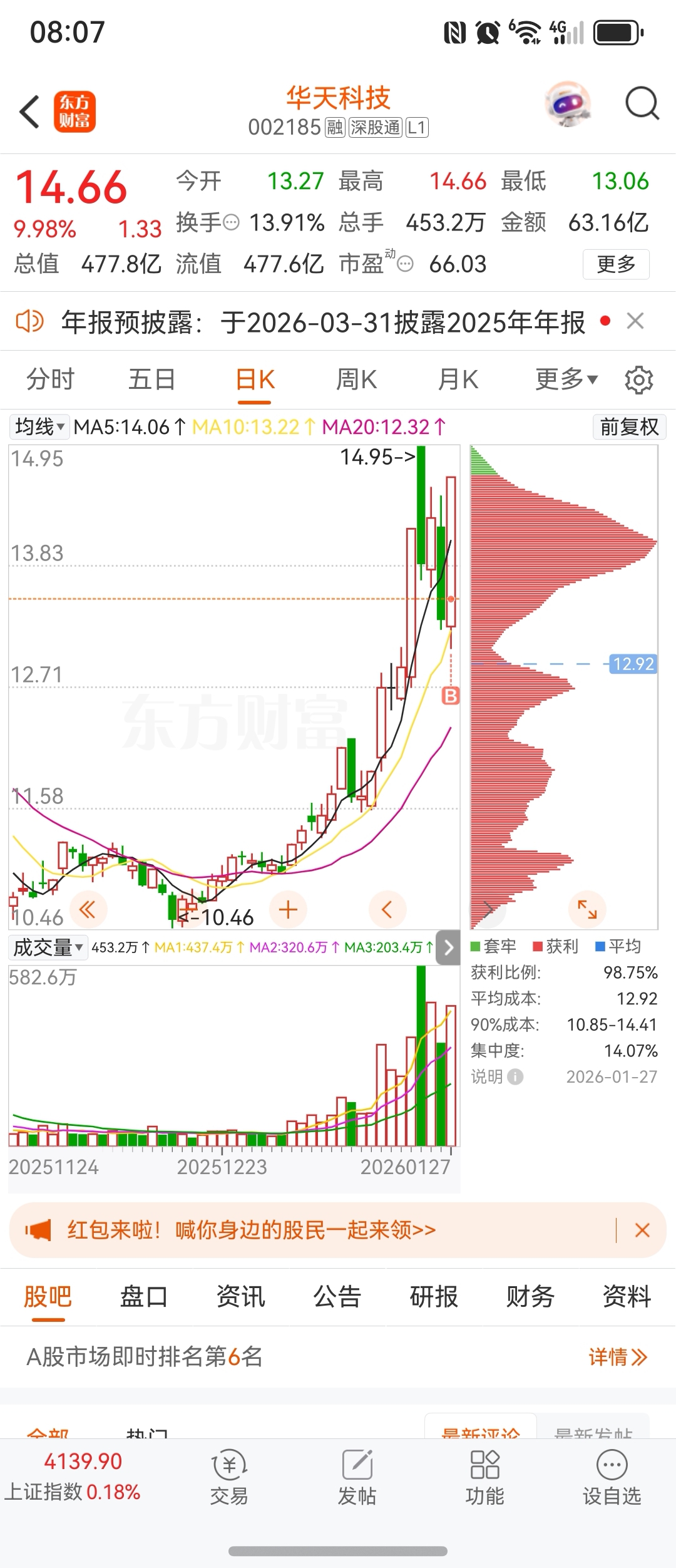 $华天科技(SZ002185)$ 20号加的自选,21号眼看着涨停,错过了15个点。