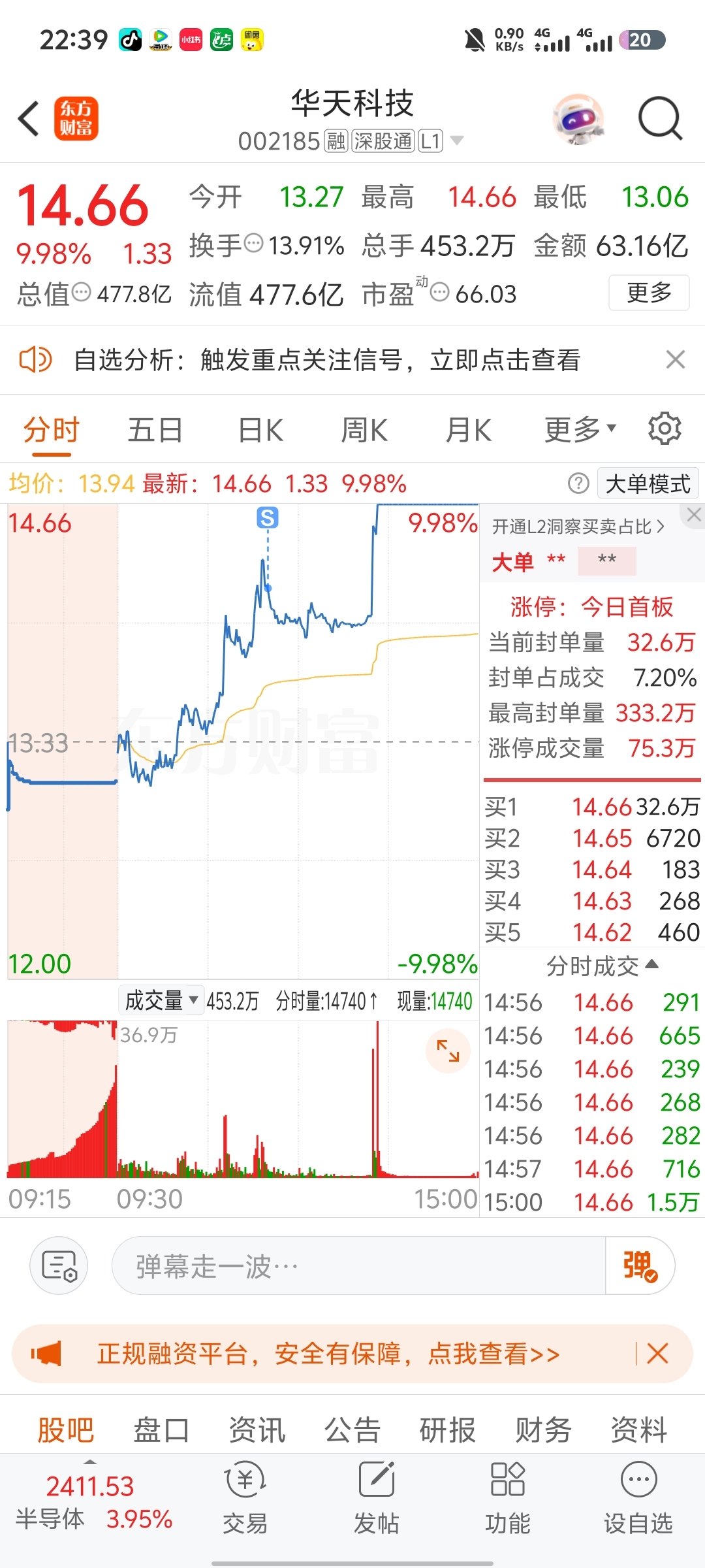 $华天科技(SZ002185)$ 赚了100多块把我吓走了