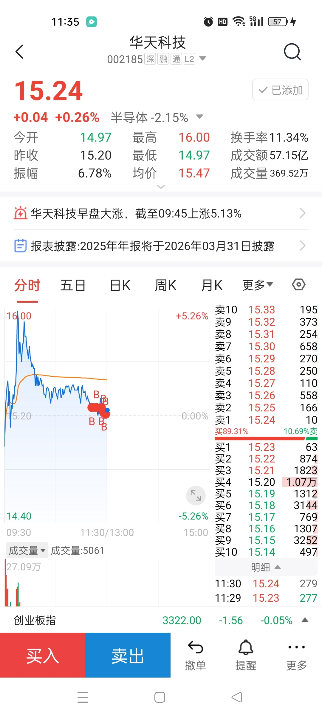 $华天科技(SZ002185)$ 一波启动,并洗盘数天再次走二波,二波首日一个涨停板,次日上冲回调,今天是回调后首日