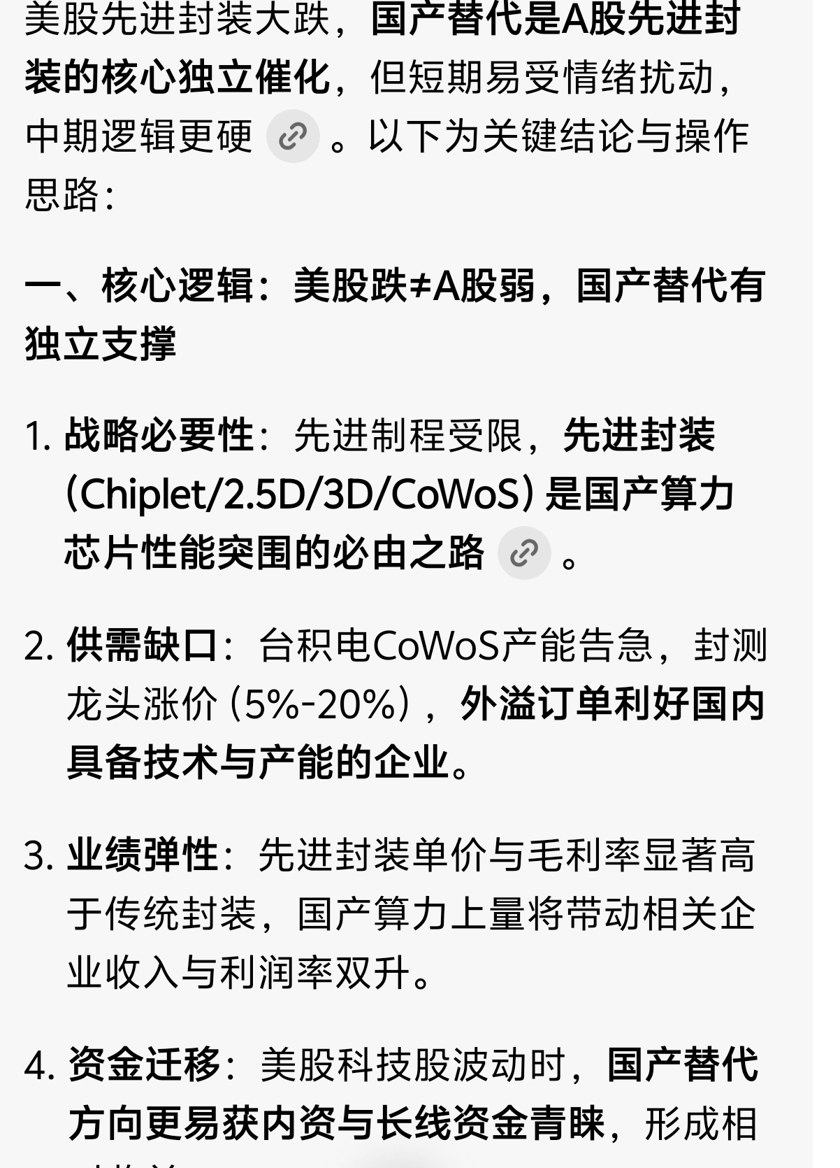 我不懂,为什么美股存储跌,我们要跟跌,首先,存储和封装是两回事,其次国产替代是我