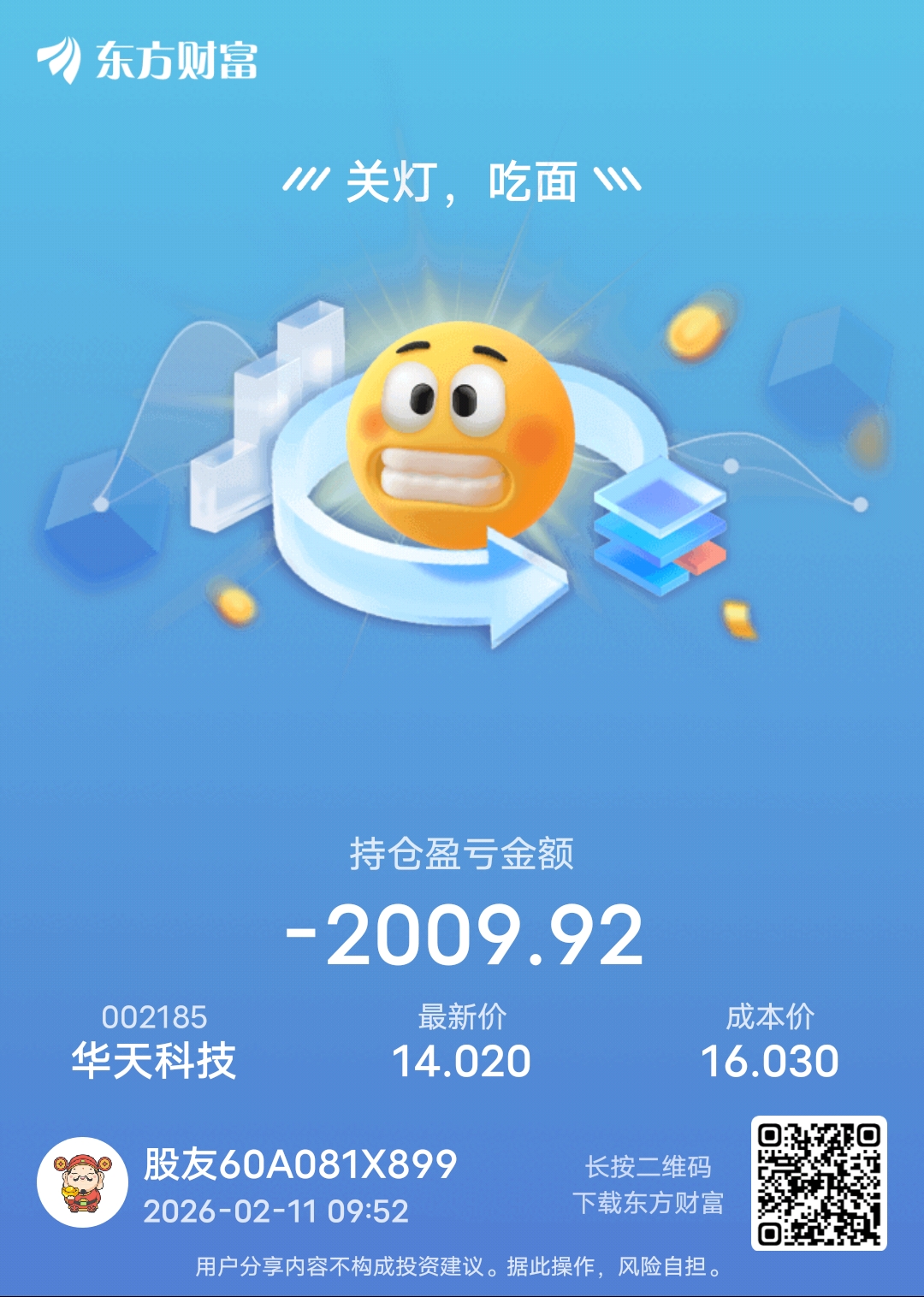 温馨提示: 1.根据《证券法》规定,禁止编造、传播虚假信息或者误导性信息,扰乱证券市场;2.用户在本社区发表的所有资料、言论等仅代表个人观点,与本网站立场无关,不对您构成任何投资建议。用户应基于自己的独立判断,自行决定证券投资并承担相应风险。《东方财富社区管理规定》