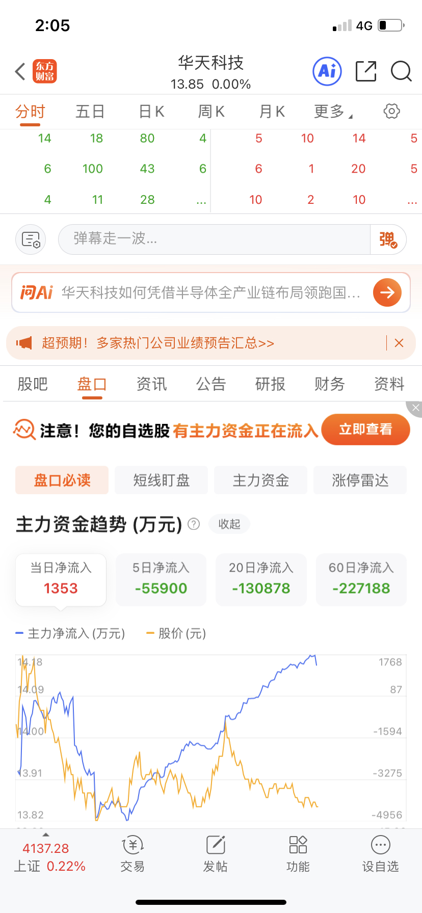 $华天科技(SZ002185)$ 流入了,骗人的吧