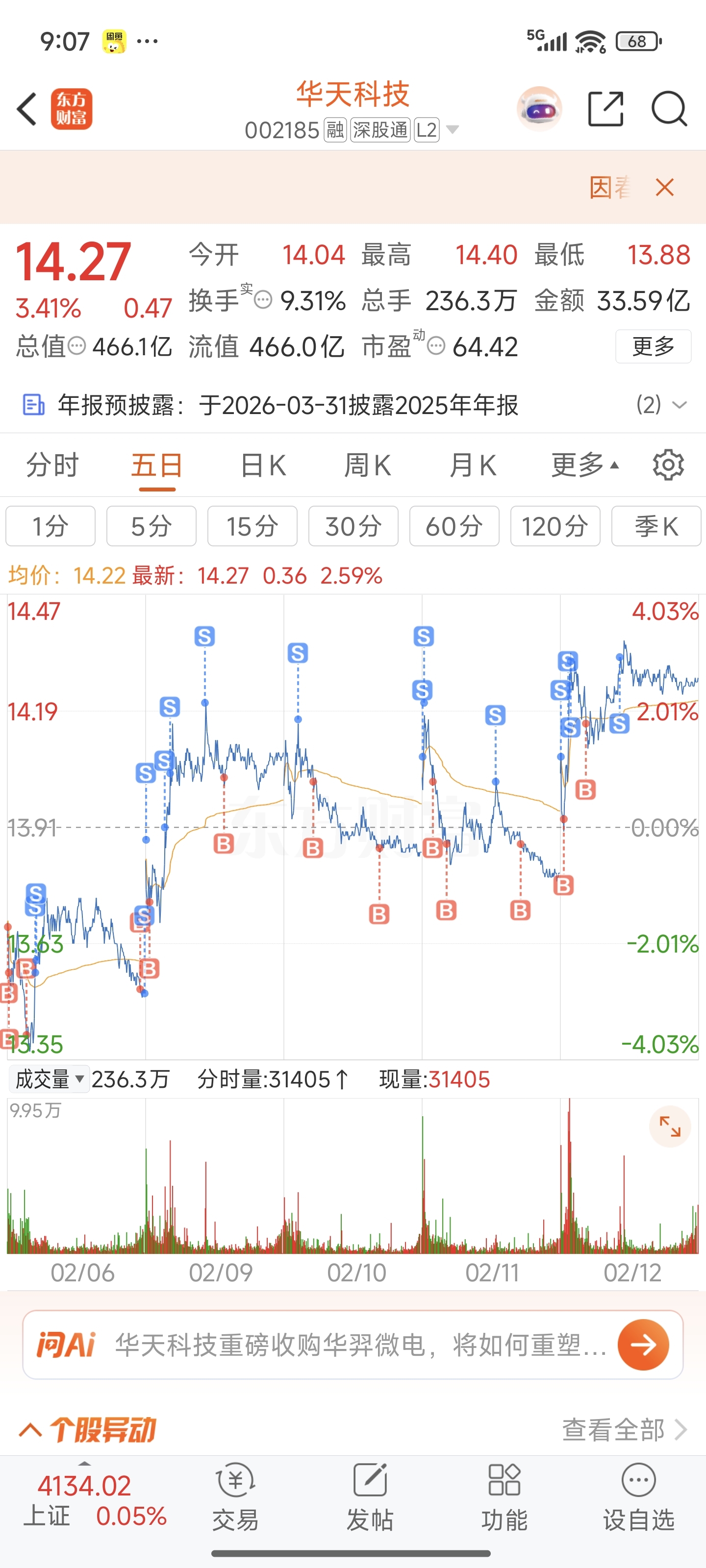 看得出来华天的股价会持续走高,我想低价接回来些都不给机会