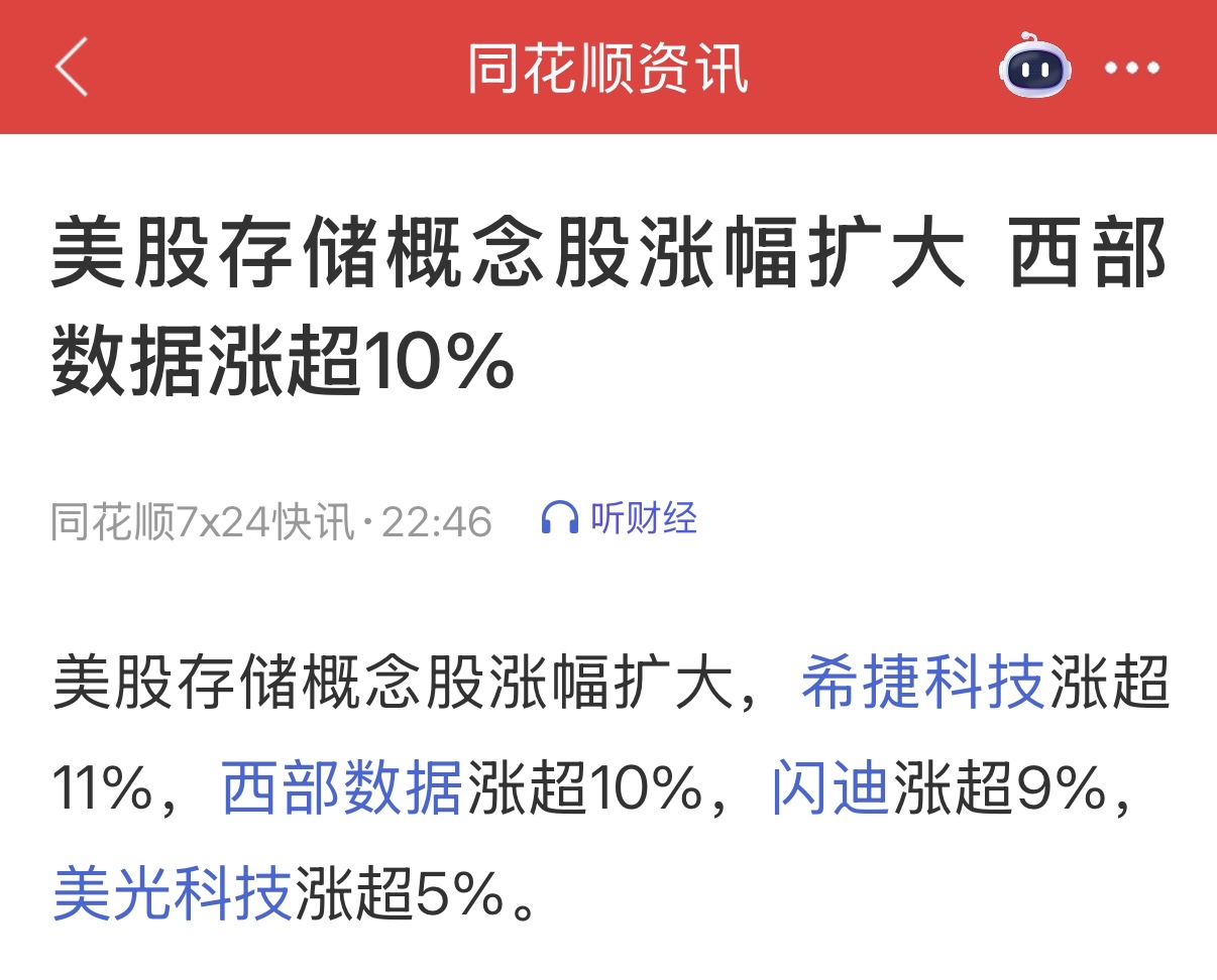 今晚美股存储芯片股暴涨:闪迪暴涨超9%,西部数据、希捷科技暴涨超10%