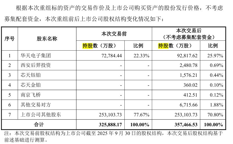 根据《草案》,公司购买华羿微电共向控股股东在内的25名交易对象发行31578.36万股,发行股份价格为8.35元/股(公司2月11日收盘价为13.8元/股),股份对价合计26.37亿元;向14名交易对象(不包括控股股东)共支付3.59亿元现金。