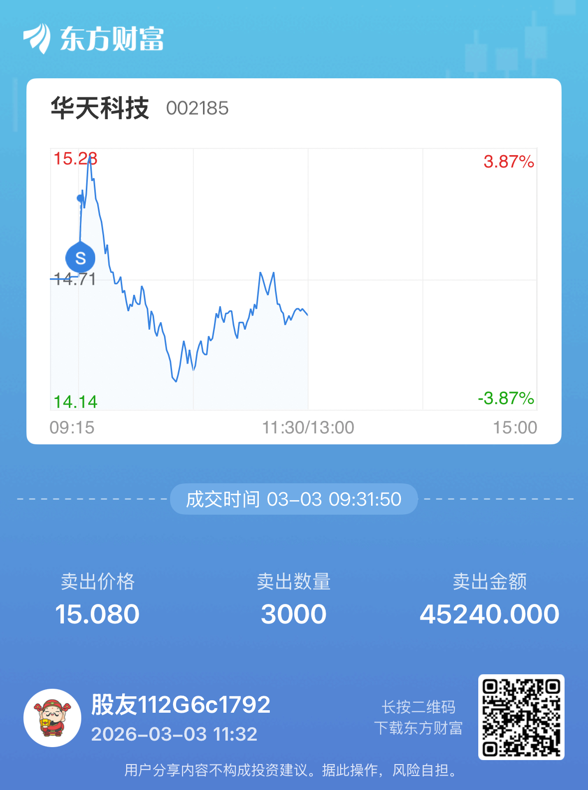 温馨提示: 1.根据《证券法》规定,禁止编造、传播虚假信息或者误导性信息,扰乱证券市场;2.用户在本社区发表的所有资料、言论等仅代表个人观点,与本网站立场无关,不对您构成任何投资建议。用户应基于自己的独立判断,自行决定证券投资并承担相应风险。《东方财富社区管理规定》