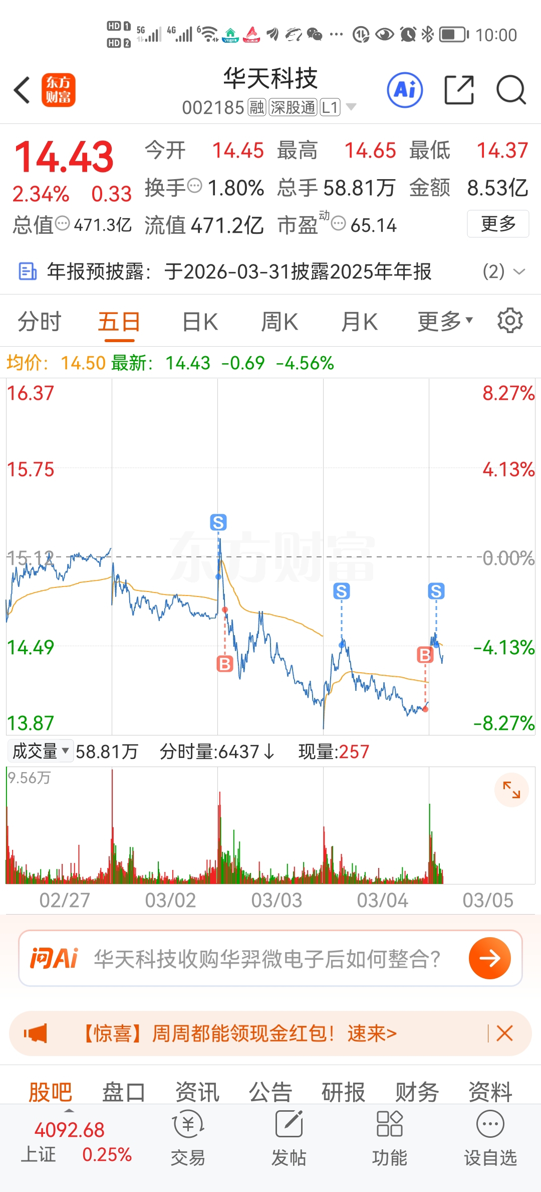 温馨提示: 1.根据《证券法》规定,禁止编造、传播虚假信息或者误导性信息,扰乱证券市场;2.用户在本社区发表的所有资料、言论等仅代表个人观点,与本网站立场无关,不对您构成任何投资建议。用户应基于自己的独立判断,自行决定证券投资并承担相应风险。《东方财富社区管理规定》
