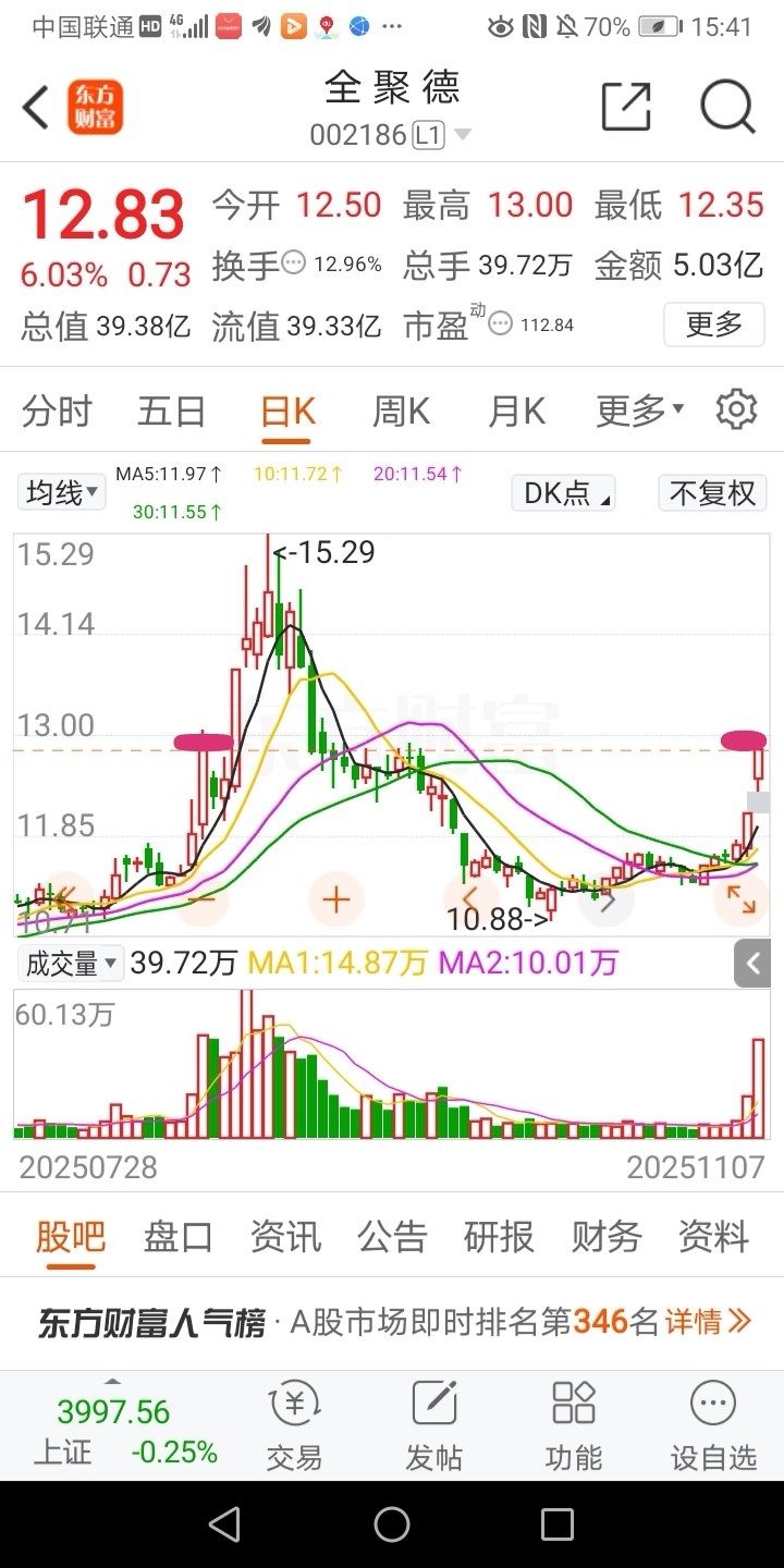 $全 聚 德(SZ002186)$ 庄家折磨操盘贫道不说点神马有点说不过去了:长的太像了除了缺口