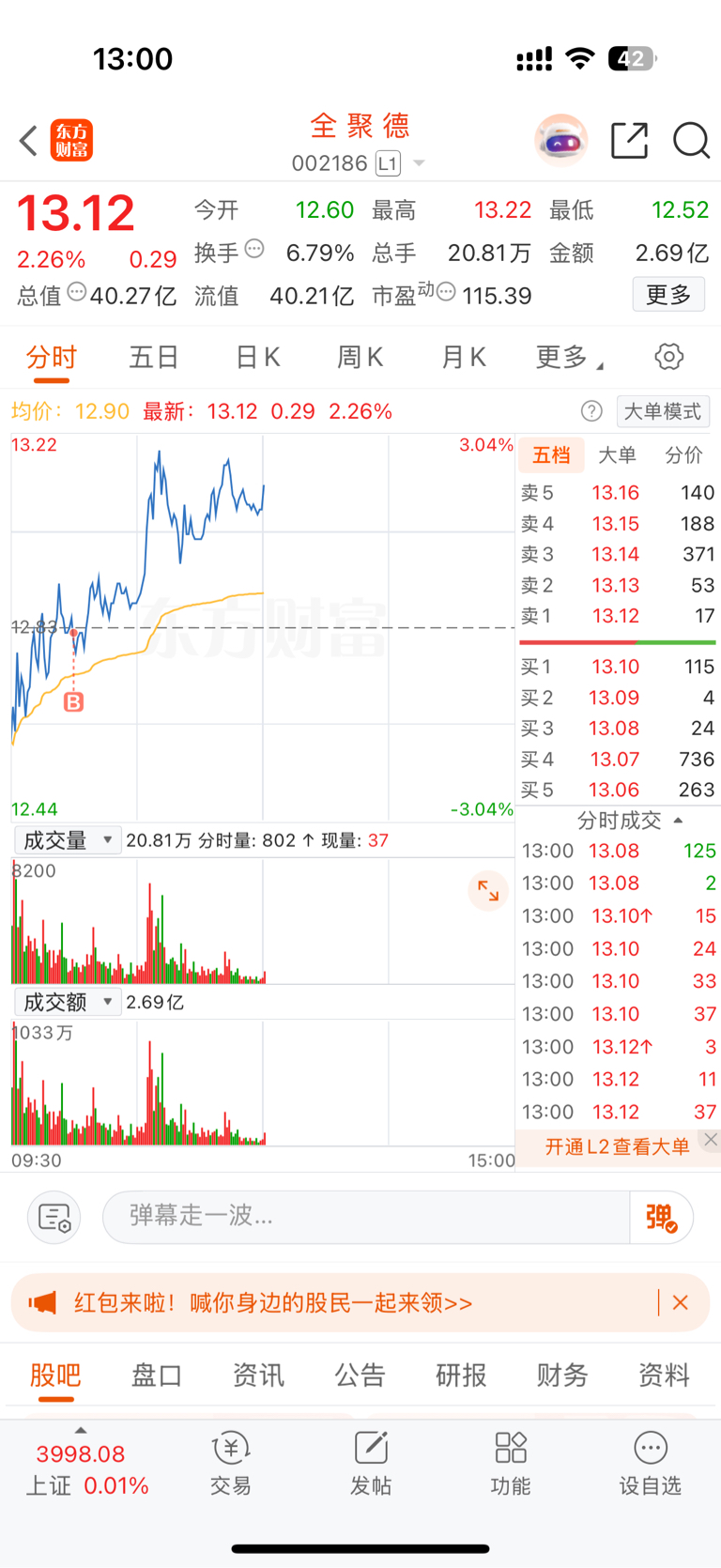 $全 聚 德(SZ002186)$ 13你爱答不理,428你高攀不起,我就是顶尖!!!