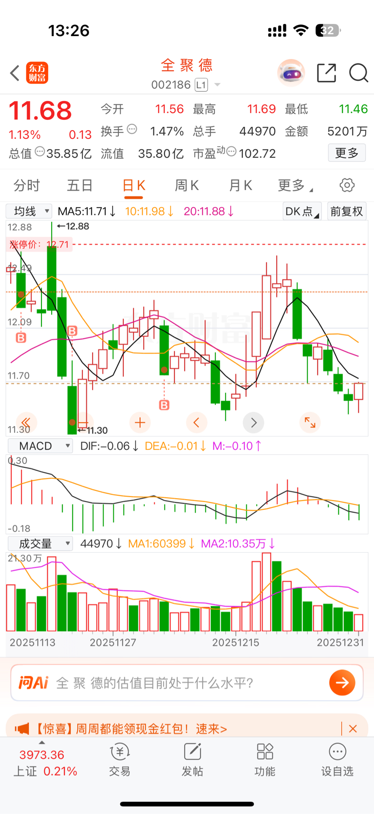 $全 聚 德(SZ002186)$ 最后一天上车机会了,假期回来,主升浪了