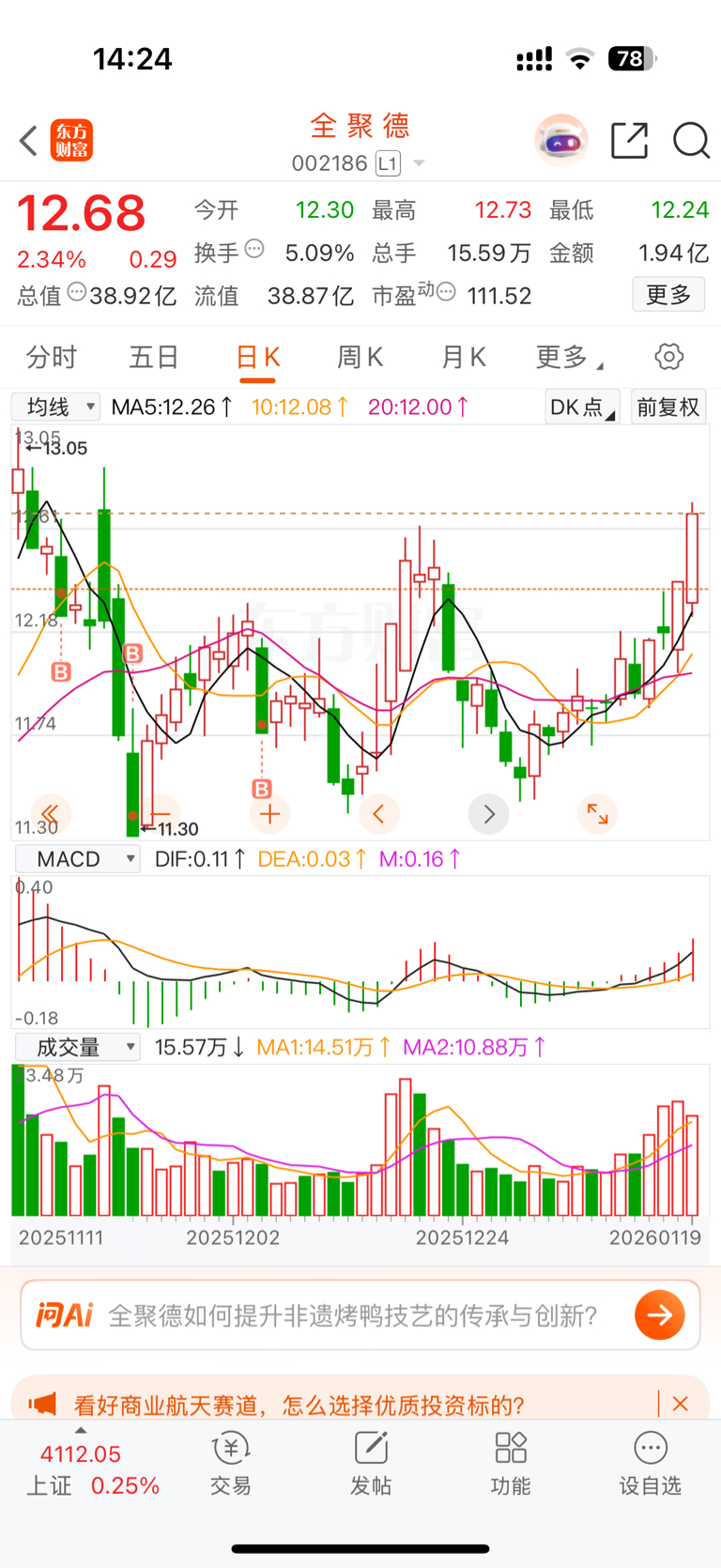 $全 聚 德(SZ002186)$ 看到428
