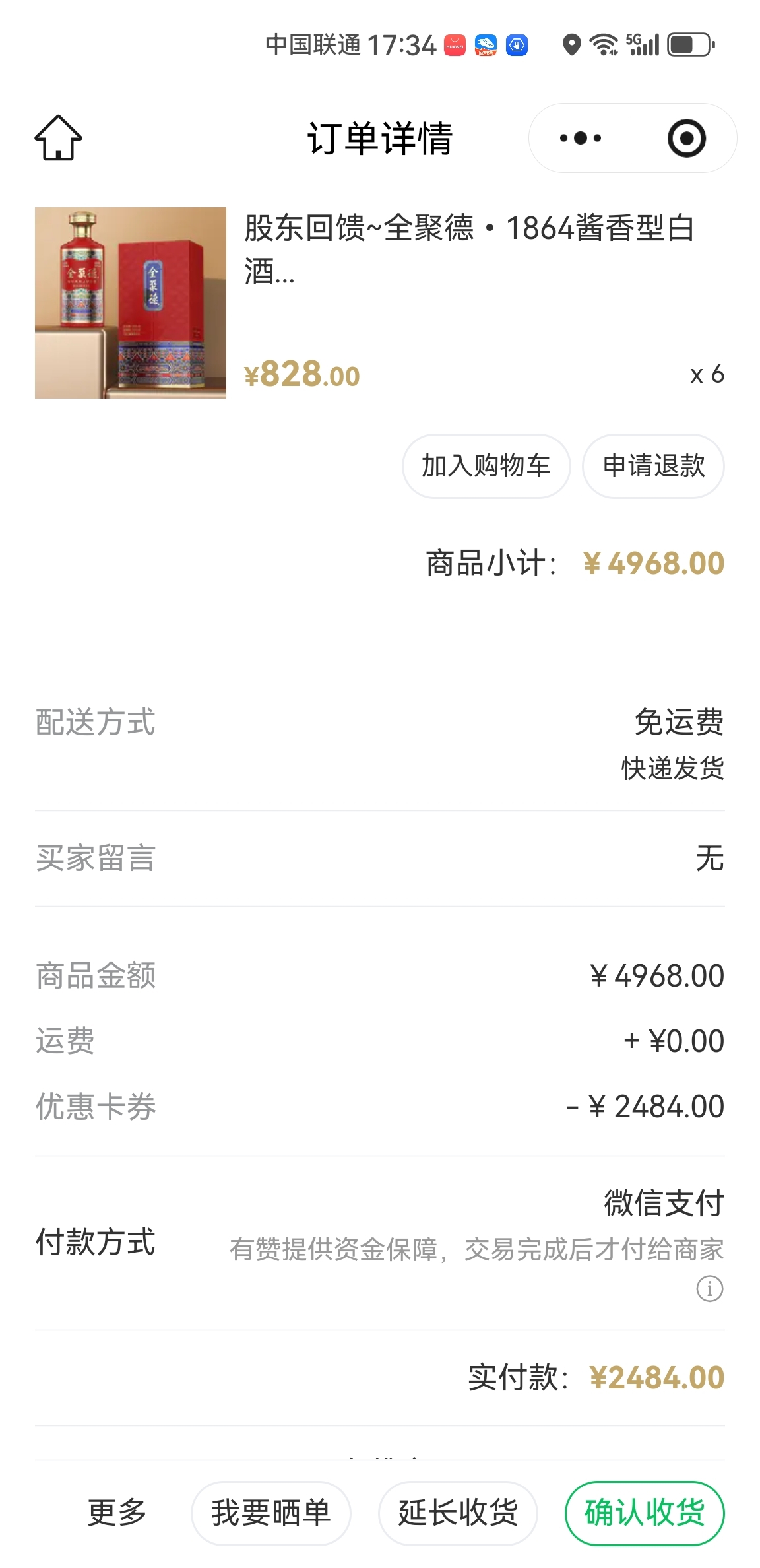 $全 聚 德(SZ002186)$ 这酒23年买过,喝着不错,今年五折优惠又下单了