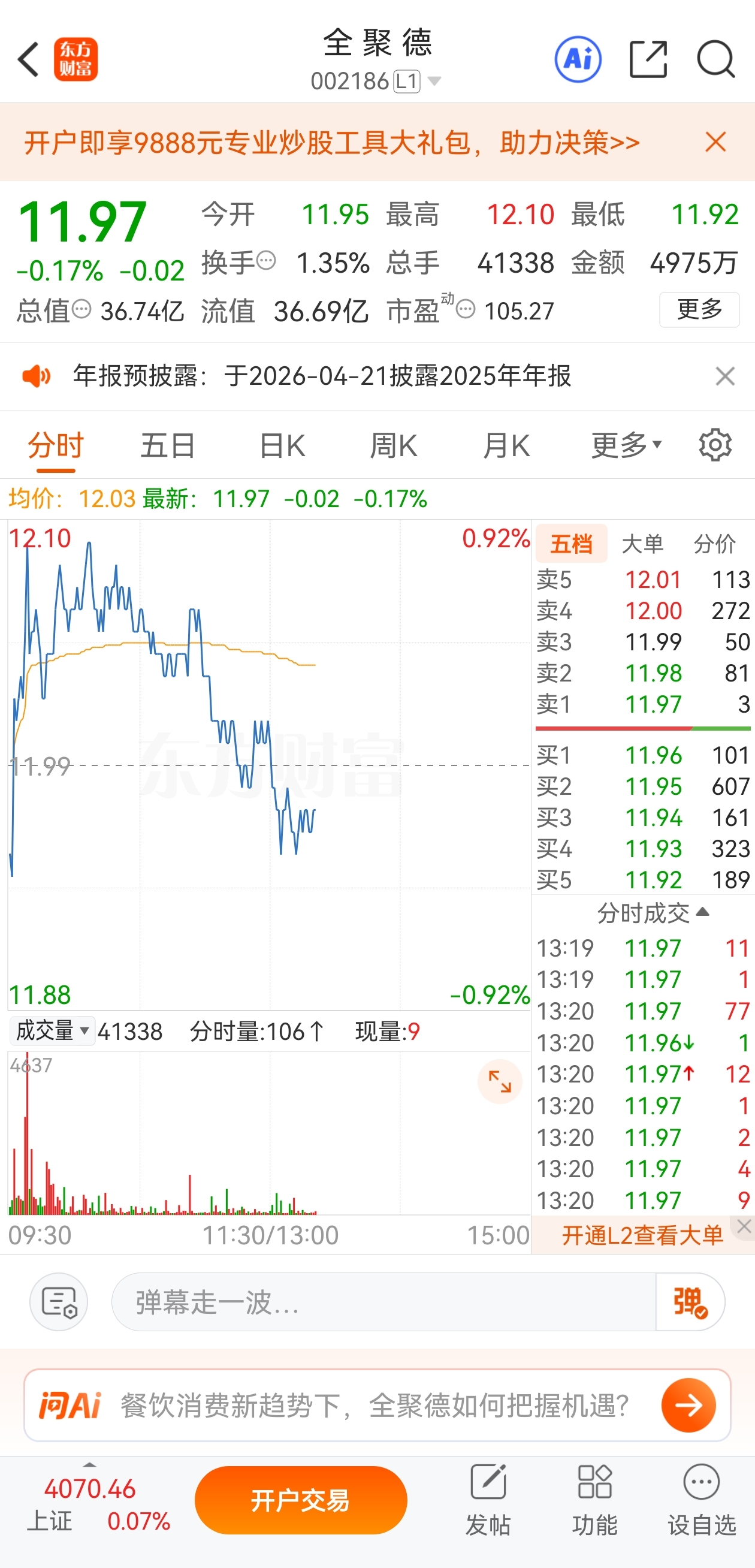 $全 聚 德(SZ002186)$ 介于部分股友是15元、20多元,还有30多买入全聚德,说我目标价太低,对他们的心里造成了比较大的伤害。基于和平相处原则,今天决定上调全聚德目标价0.1元,由原来4.28元调整为4.38元!但全聚德糟糕的基本面和拙劣的资金操盘手法并未发生改变!特此通知!