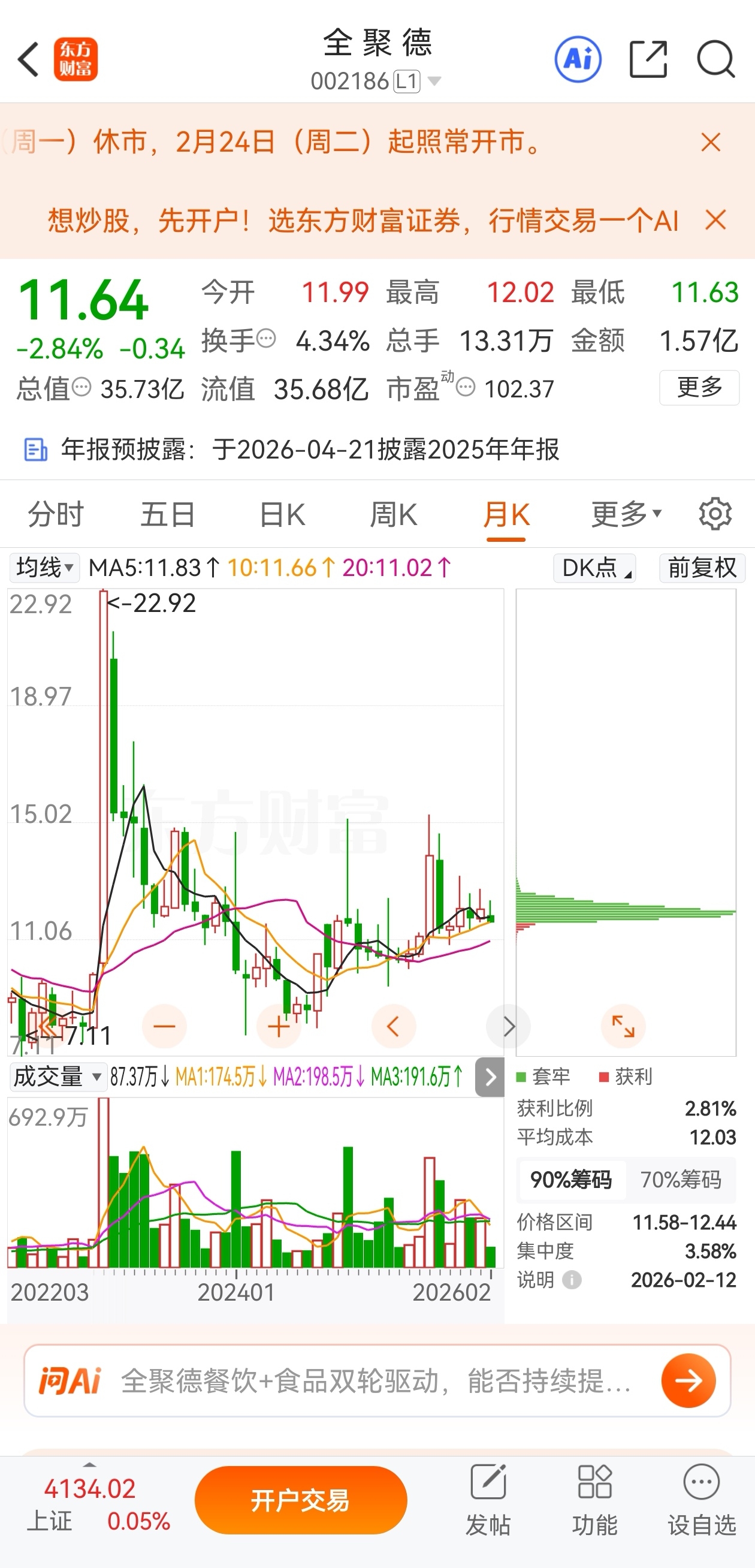 $全 聚 德(SZ002186)$ 明天大概率收绿色十字星!但这绝对不是抄底的信号,真正的下跌将在年后开启!本周走势和我一星期前预测得差不多,本星期红了一天,大家应该要感到万幸的。周线和月线都进入的下降通道,明天大概率有红盘出清的机会,建议能卖掉的都卖掉,能减仓的都减仓!后面低位的机会一大把,只怕你不敢要