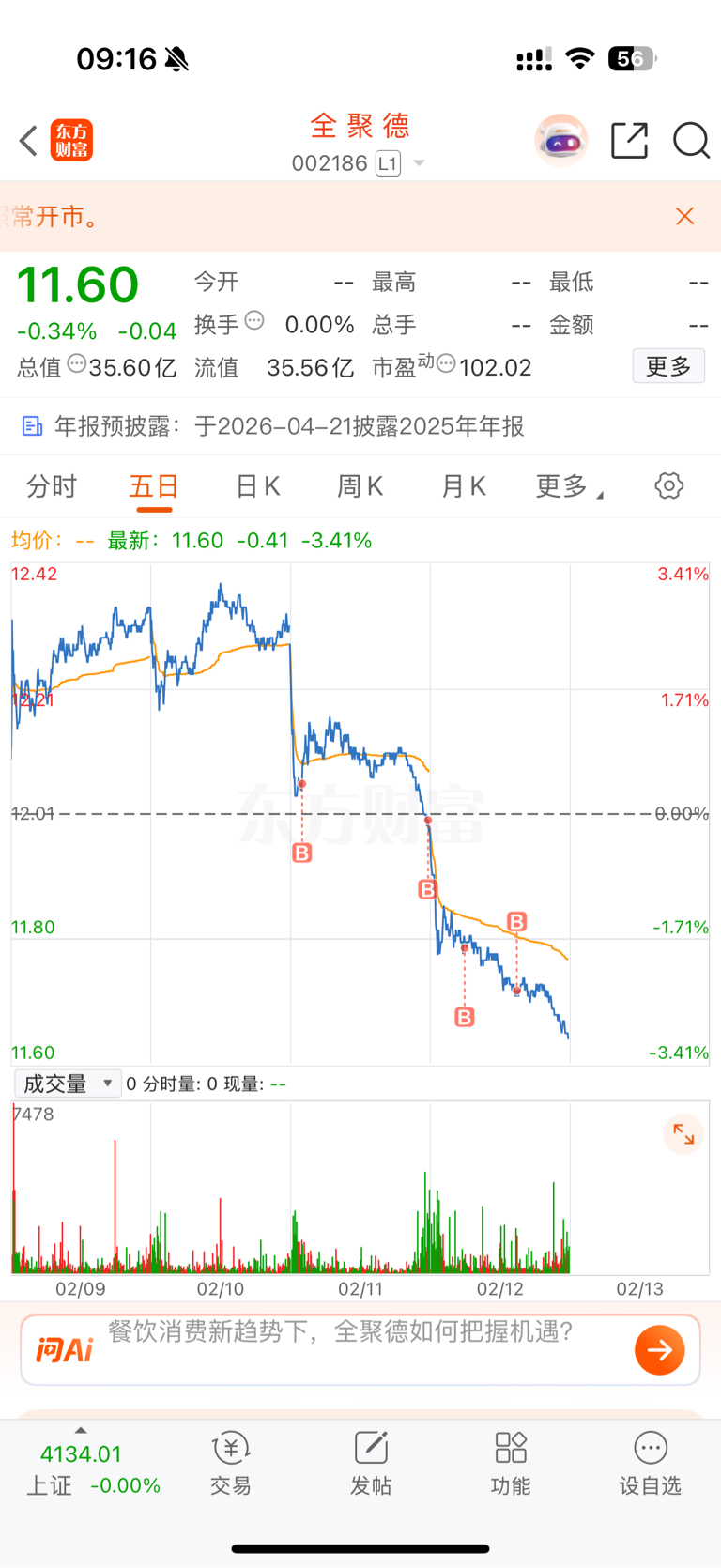$全 聚 德(SZ002186)$ 从今天起,开始数钱