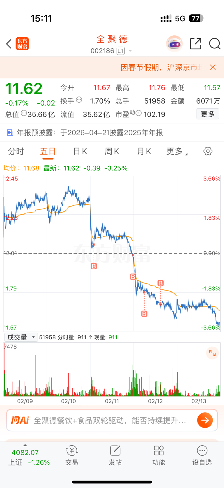 $全 聚 德(SZ002186)$ 洗多久,涨多高