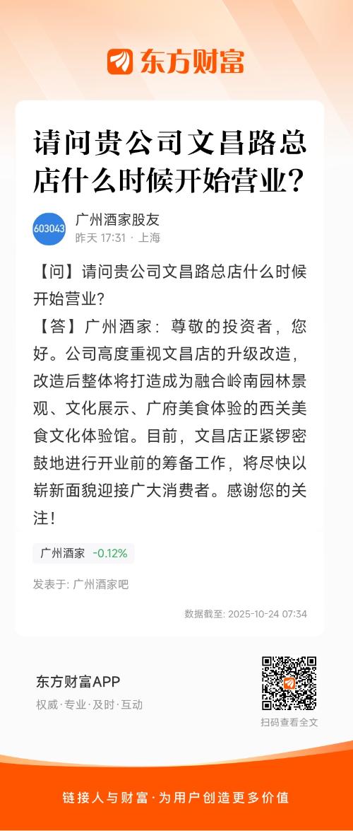 尊敬的投资者,您好。公司高度重视文昌店的升级改造,改造后整体将打造成为融合岭南园林景观、文化展示、广府美食体验的西关美食文化体验馆。目前,文昌店正紧锣密鼓地进行开业前的筹备工作,将尽快以崭新面貌迎接广大消费者。感谢您的关注!